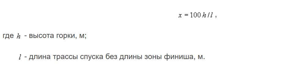 3.27 средний уклон трассы спуска; Х: Уклон трассы спуска, выражаемый в процентах и рассчитываемый по формуле