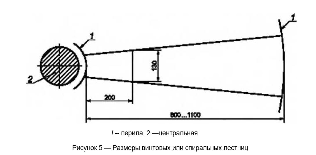 8.3.3.7 Размеры ступеней на винтовых и спиральных лестницах — в соответствии с рисунком 5.