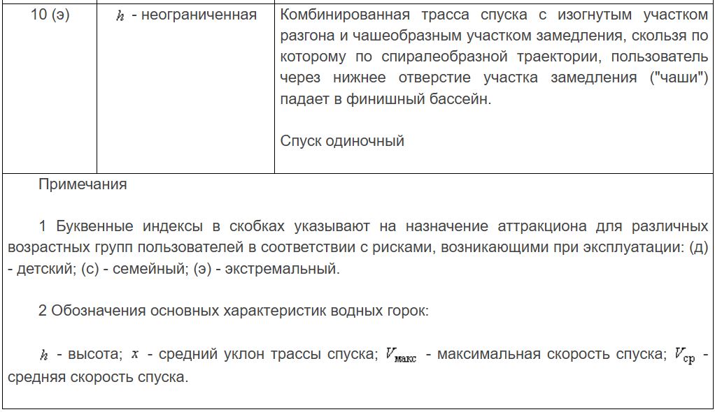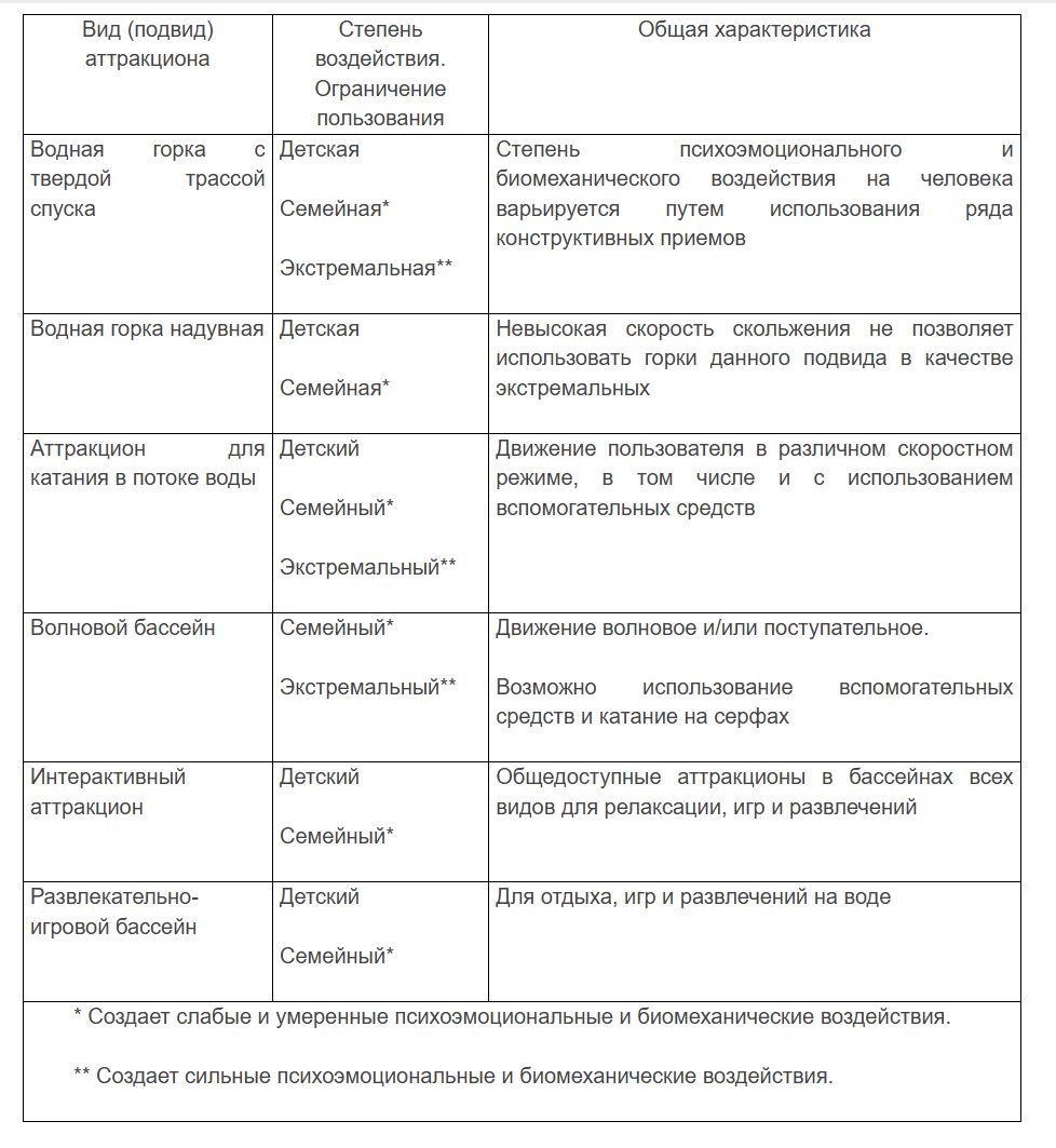 Примечание - К аттракционам для катания в потоке воды относятся аттракционы "Ленивая река", "Медленная река", "Бурный поток" и т.п.