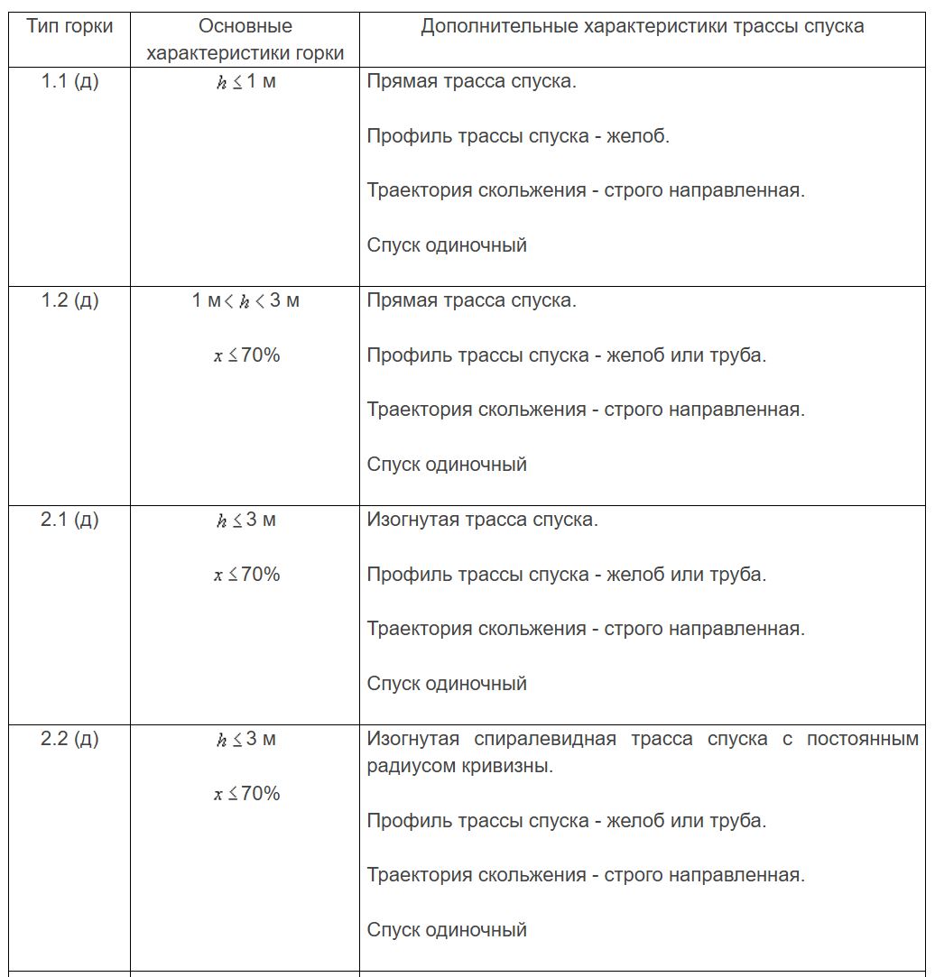 8.5.5 Конструкция трассы спуска не должна создавать недопустимо высокие риски перегрузок пользователя (см. приложение Б).