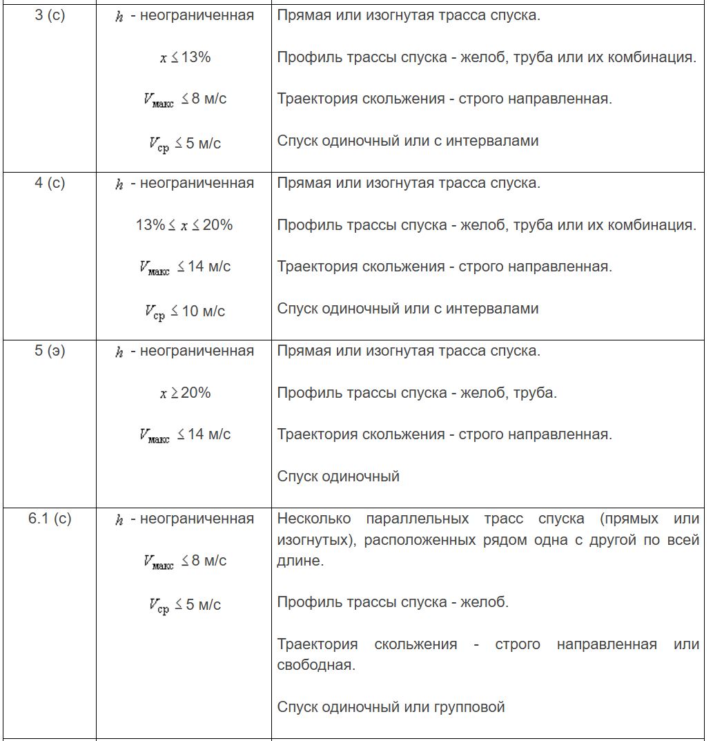 8.5.3 Конструкция трассы спуска в сочетании со скоростью скольжения и позой пользователя должна обеспечивать устойчивое положение тела пользователя в процессе его движения по трассе без переворотов, опрокидывания, столкновений со стенками трассы и других опасных ситуаций, чреватых повышенными рисками получения травмы.