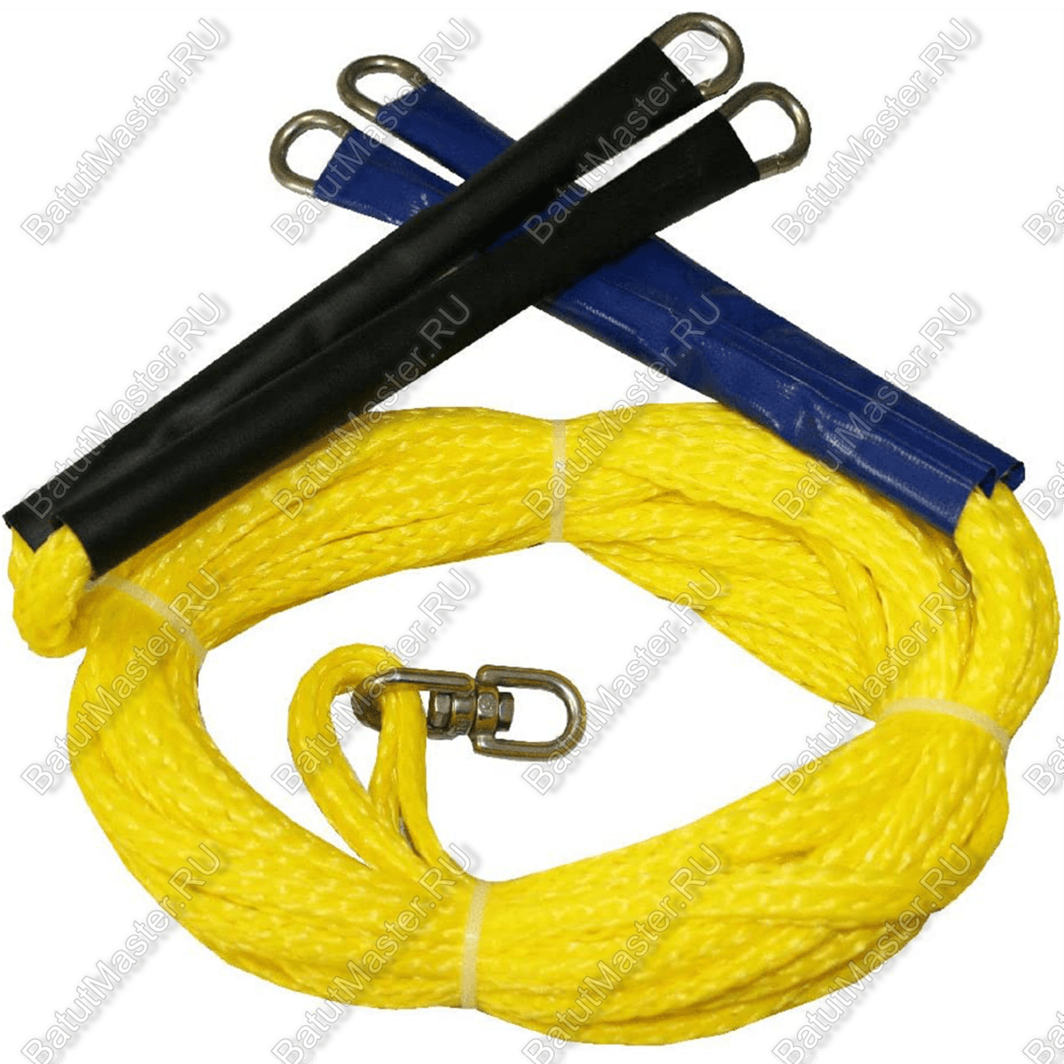 Трос просто подготовить к использованию, достаточно развернуть связку прикрепить основное среднее крепление, затем присоединить концы. Возможна фиксация 4 отдельных элементов либо соединение двух частей в одно целое.