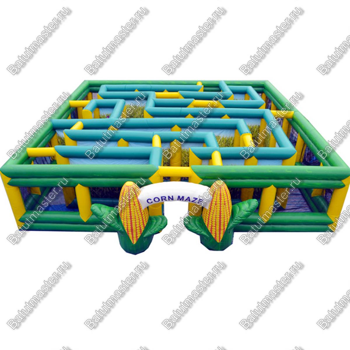 Коммерческий лабиринт «Кукурузное поле» представляет собой уникальную и интересную конструкцию, где дети смогут почувствовать себя, будто находятся в настоящем кукурузном поле. Это отличная замена такому аттракциону, как надувной батут. Здесь каждая деталь напоминает об этом. На стены нанесены реалистичные фотографии кукурузного поля, причем выполнены они в соответствии с точным размером реальных злаковых растений. Вход украшают две огромные надувные кукурузы.