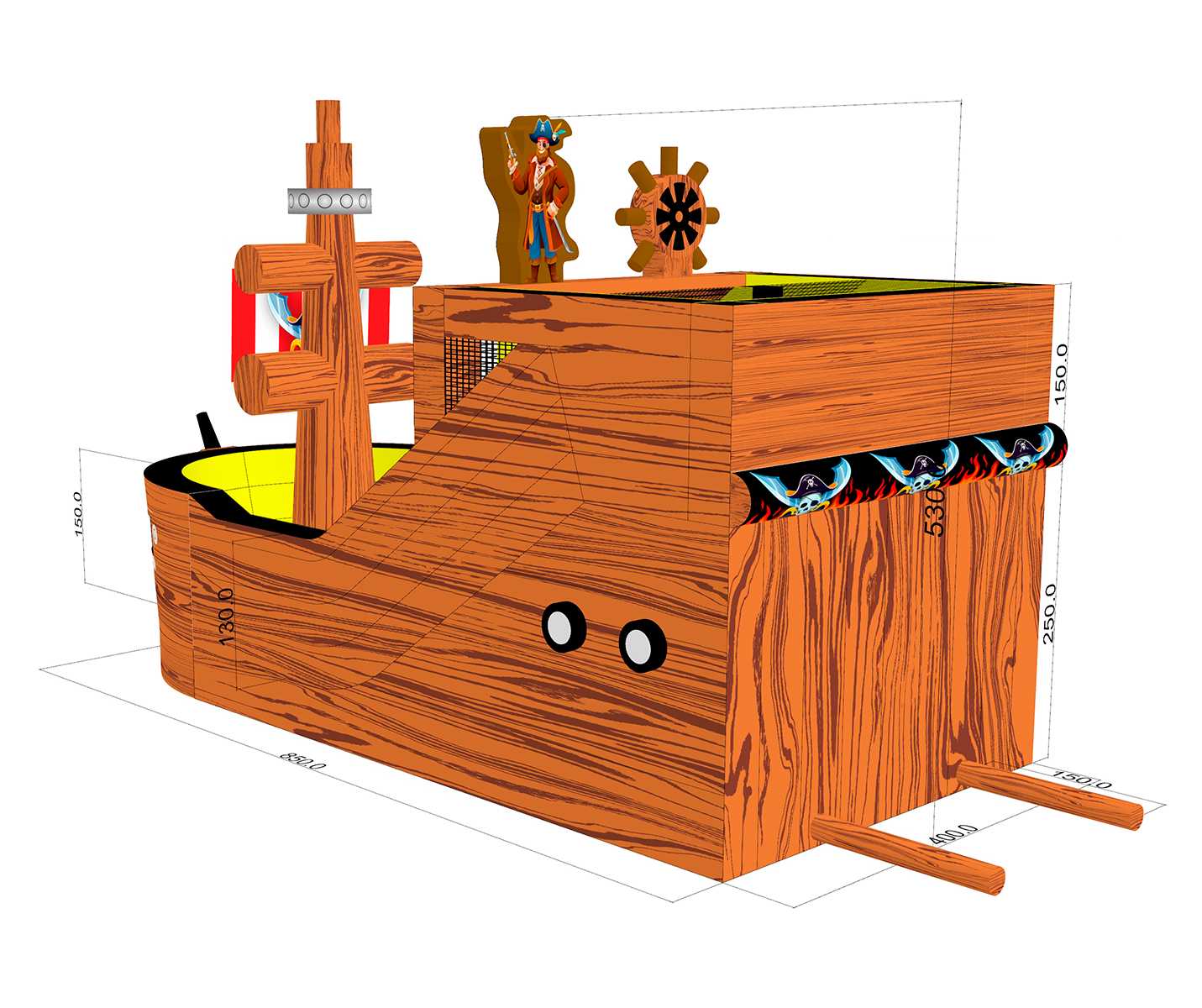 Батут сочетает в себе несколько зон активности. Здесь есть просторная площадка для прыжков и высокая горка со стартовой точкой на высоте 2,5 м. Дети могут бегать, прыгать, кататься и придумывать собственные пиратские сценарии игр. Аттракцион рассчитан на одновременное использование до 10 человек, что делает его отличным выбором для массовых мероприятий.