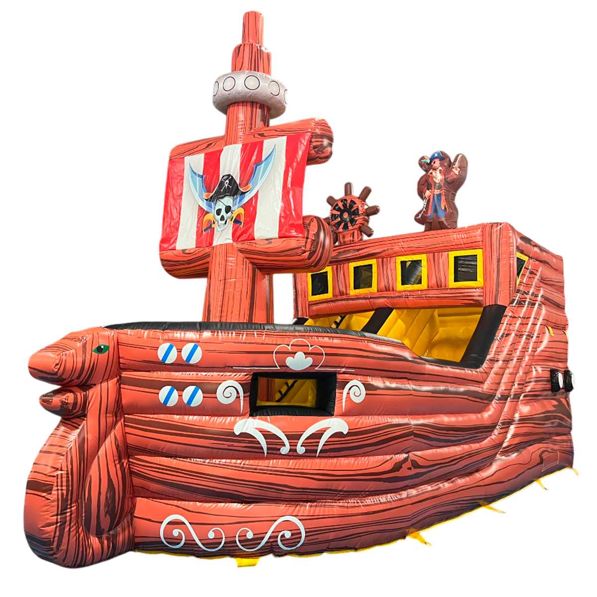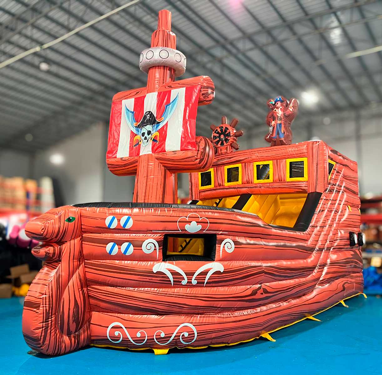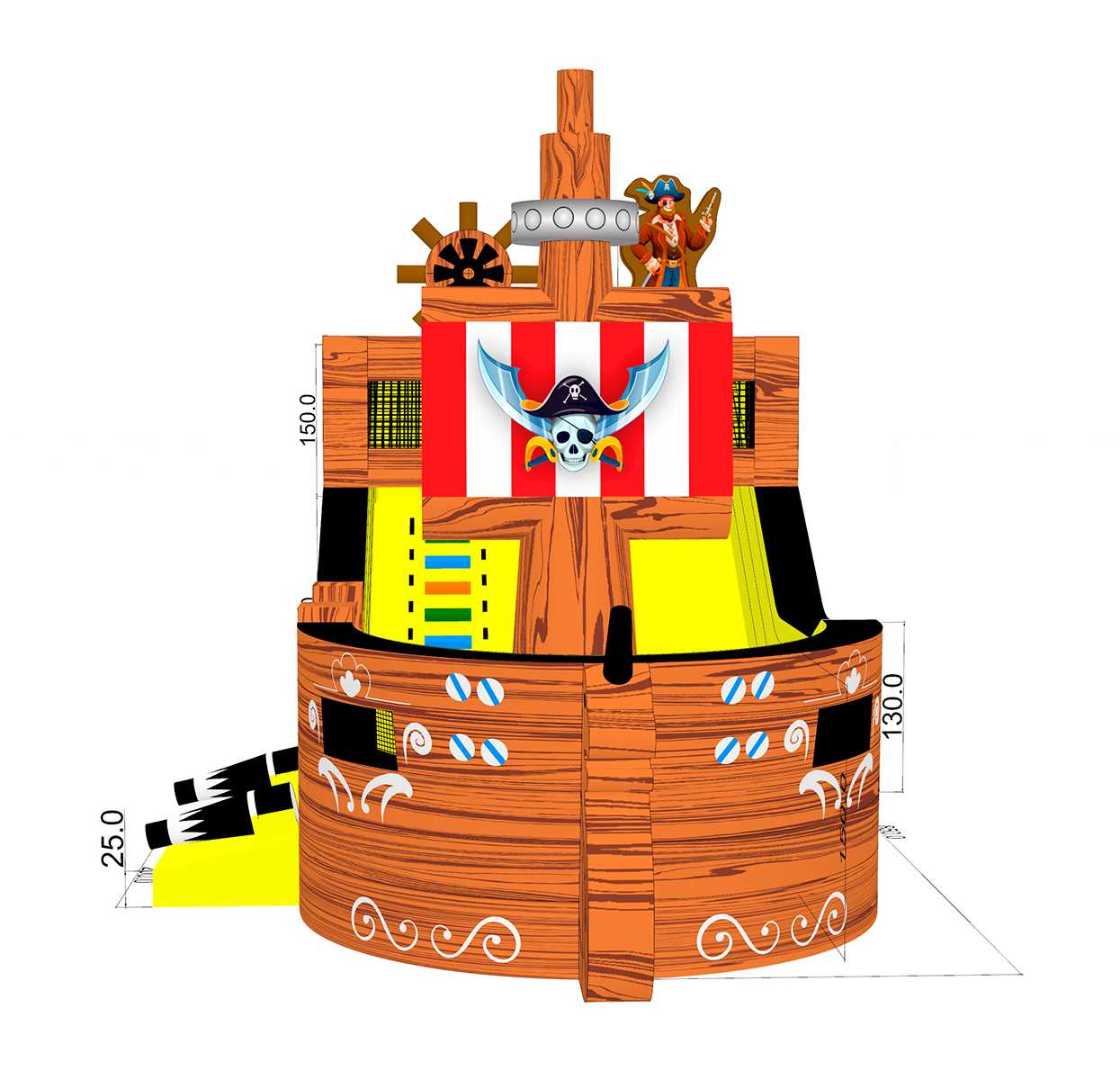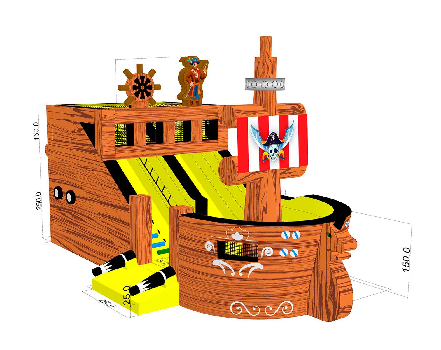 Коммерческий надувной корабль «Атлантис» 8.5x4x5 м — это больше, чем просто батут. Его оформление в виде пиратского судна превращает каждую игру в увлекательное морское путешествие. Яркие декоративные элементы, мачта с флагом и иллюминаторы создают эффект присутствия на настоящем корабле, что моментально завораживает детей и привлекает внимание взрослых.