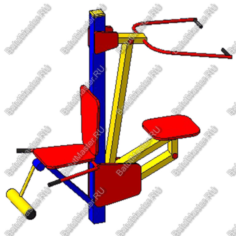 Предлагаемый тренажер имеет вертикальную опору, на которой закреплены все силовые элементы. С одной стороны закреплено сидение с покрытием из влагостойкой противоскользящей фанеры. Краска устойчива не только к действию влаги, но и к ультрафиолету. Когда пользователь садится на это сидение, то ноги он ставит на размещенный внизу валик, а руками берет две рукояти, которые находятся слева и справа от сидения. Здесь нет пружин или грузов. Тренирующийся борется со своим весом, что наиболее безопасно и эффективно. С другой стороны тренажера на качающейся трапеции закреплено еще одно сидение, а над головой спортсмена размещены две рукоятки. В движение приводится тренажер тогда, когда тренирующийся подтягивает рукояти к себе вниз.