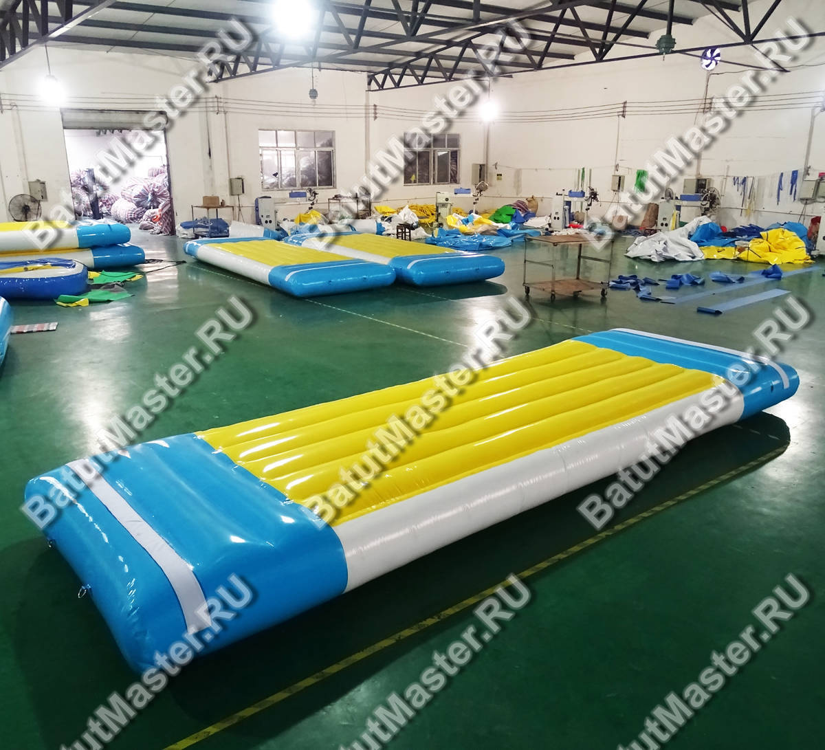 Элемент для аквапарка «База» — это универсальный надувной модуль для водных парков, который легко вписывается в любые сценарии: от спокойного семейного отдыха до активных водных развлечений. Размеры изделия — 6 метров в длину, 2 метра в ширину и 0,3 метра в высоту — обеспечивают удобство в использовании как детьми, так и взрослыми. Модель выполнена в ярких жёлто-голубо-белых цветах, что делает её заметной и привлекательной для посетителей любого возраста.