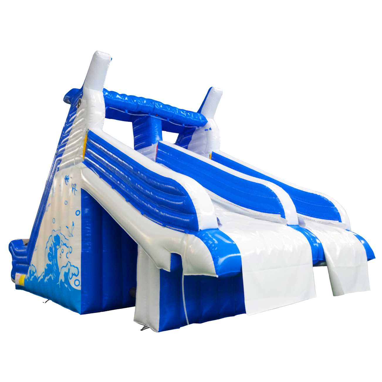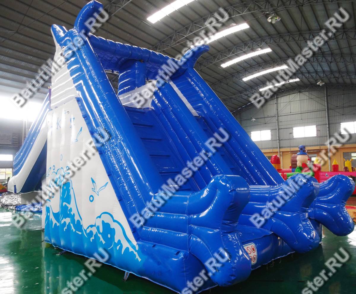 Надувная водная горка для бассейна «Теплое море» — это готовое решение для бизнеса в сегменте «Наземные аквапарки и водные горки», спроектированное специально под потребности операторов парков и сезонных площадок. Конструкция длиной 8 м, шириной 4 м и высотой 5 м формирует выразительный архитектурный силуэт, хорошо заметный с расстояния и органично вписывающийся как в интерьер крытого аквацентра, так и на открытую летнюю территорию. Морская гамма — глубокий синий в сочетании с белым — подчеркивает тематическое позиционирование и делает аттракцион фотогеничным, что напрямую влияет на органический охват в социальных сетях и уменьшает затраты на продвижение.