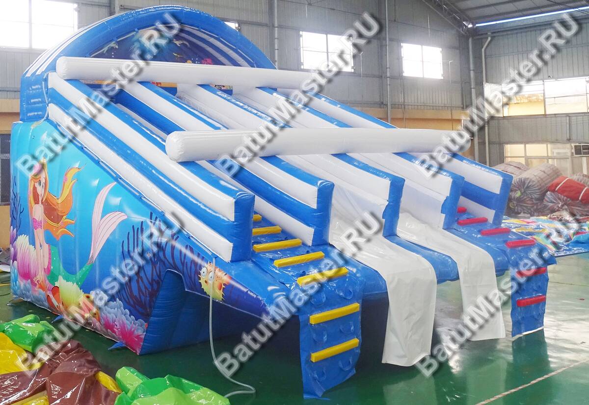 Если вы ищете способ быстро увеличить трафик в детской зоне и добавить вау-эффект в ассортимент «НАЗЕМНЫЕ АКВАПАРКИ И ВОДНЫЕ ГОРКИ», надувная водная горка «Русалочка Бэлла» станет оптимальным выбором. Коммерческий формат 7×6×5 м занимает 42 м² и сразу привлекает внимание насыщенной палитрой синих, голубых и белых оттенков и морским декором. Два параллельных ската создают динамику очереди: пока двое гостей готовятся к старту, ещё двое завершают спуск, что повышает пропускную способность без перегрузки площадки и сохраняет комфорт для посетителей.