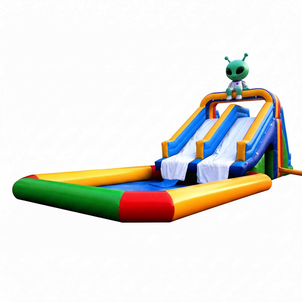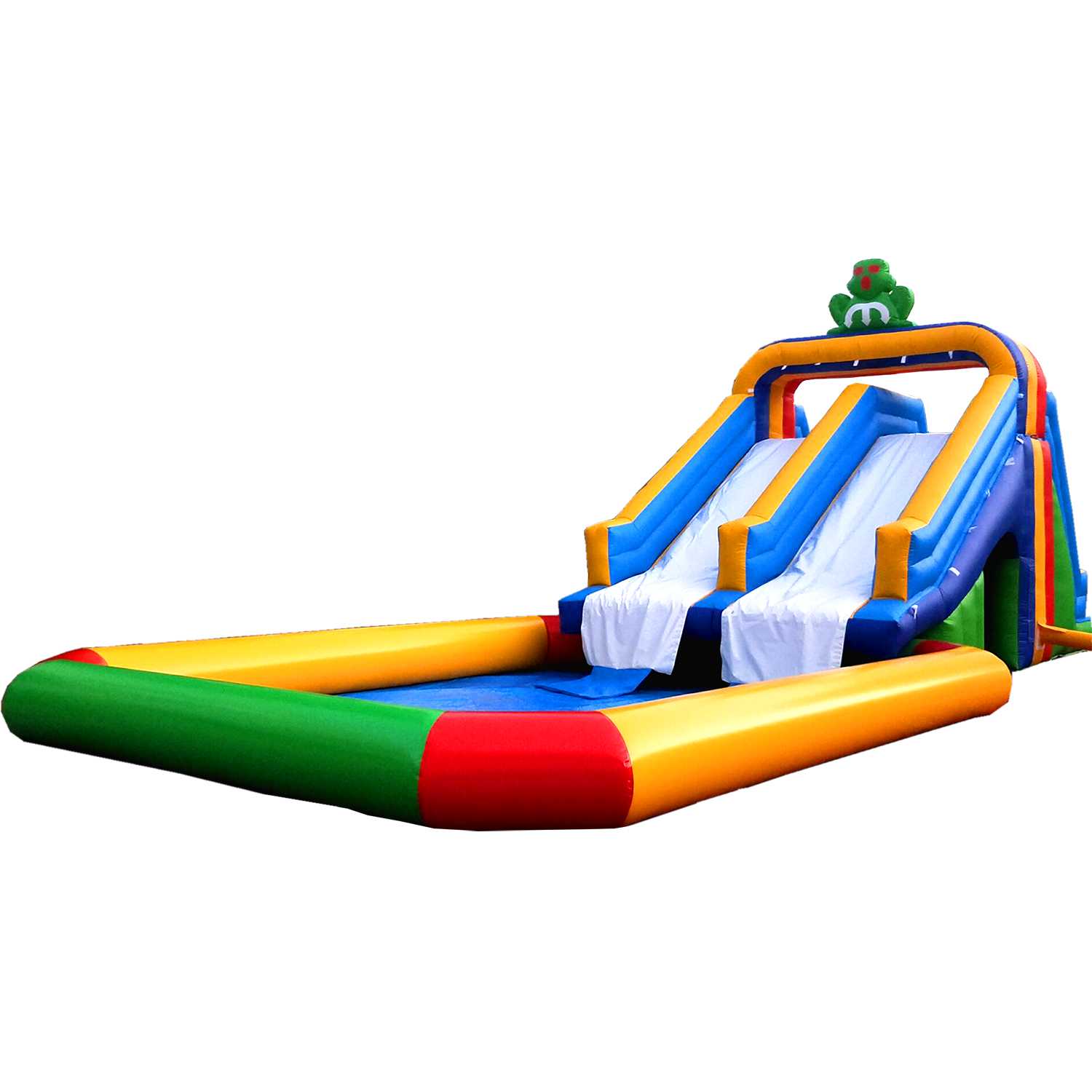 «Весёлый спуск» — флагманский водный батут с бассейном формата 13,5x5x5 м, созданный специально для сегмента «НАЗЕМНЫЕ АКВАПАРКИ И ВОДНЫЕ ГОРКИ». Это не просто водная горка, а готовый бизнес-модуль, который быстро монтируется, стабильно работает весь сезон и даёт высокую «вовлечённость» за счёт двух параллельных спусков. Посетители стартуют с платформы на высоте около 3 метров, уходят по прямому желобу и мягко приводняются в бассейне глубиной, рассчитанной именно на безопасную остановку. За счёт постоянного поддува оболочка держит форму, а избыточное давление автоматически поддерживается — оператор видит упругую, «живую» конструкцию без провисаний и «мёртвых зон».