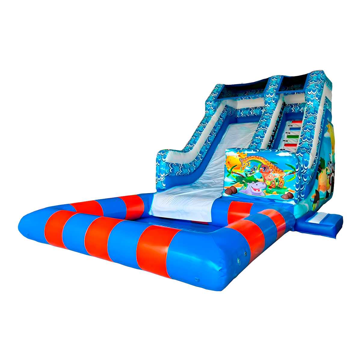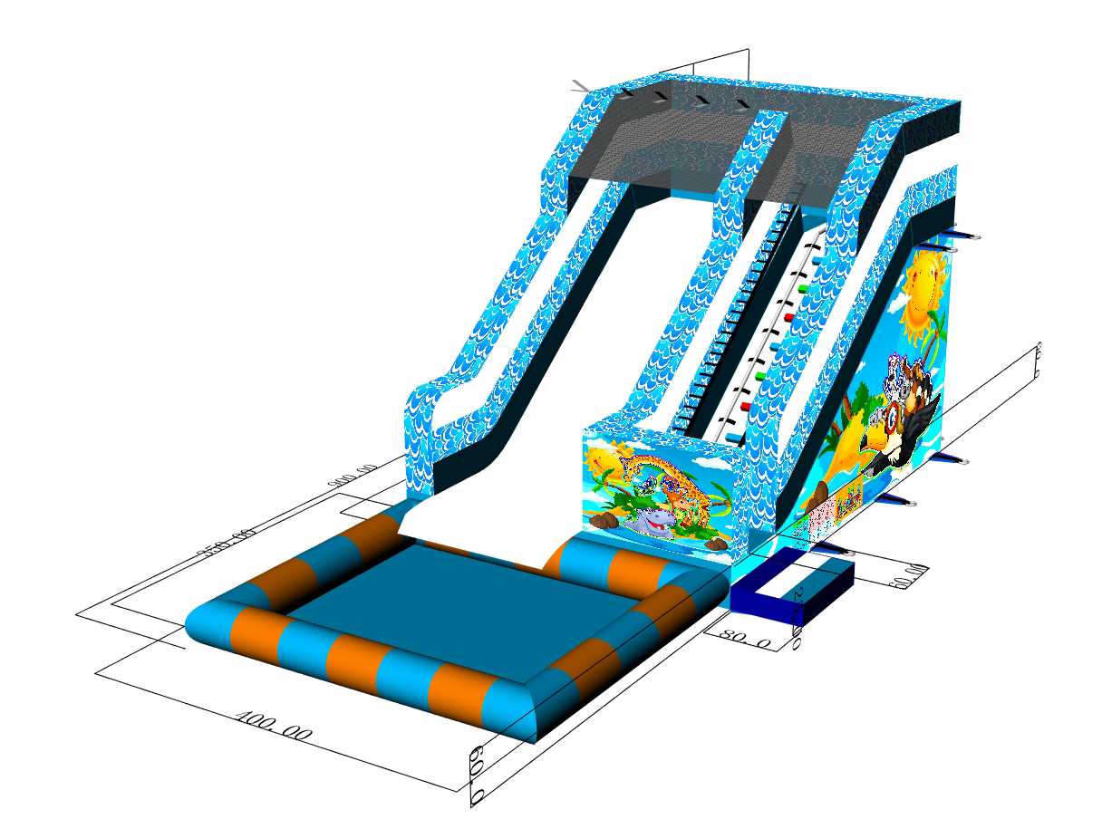 Надувной водный батут-горка с бассейном «Зверопой» — это готовое решение для тех, кто развивает направление НАЗЕМНЫЕ АКВАПАРКИ И ВОДНЫЕ ГОРКИ и хочет получать предсказуемую прибыль в высокий сезон. Конструкция занимает всего 36 м² и объединяет сразу несколько сценариев игры: динамичный подъем по лестнице к стартовой платформе, эффектный спуск по гладкому желобу и безопасное приводнение в бассейн площадью порядка 14 м². Начальная высота ската около 2,8 м дарит яркие эмоции, а прямой профиль трассы с мягкими стенками помогает держать траекторию движения и снижает риски для пользователей.
