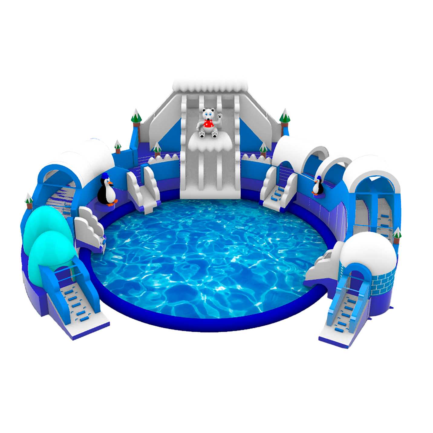 Техническая логика проста и понятна персоналу. Воздух непрерывно подаётся вентиляторами, поддерживая упругость камер и стабильность геометрии, а вода циркулирует по шлангам с возвратом в бассейн. Поверхности скольжения и лестничные секции выполнены как сменные элементы, что облегчает сервис и продлевает срок службы в режиме высокой нагрузки. Ежедневный визуальный осмотр швартовочных точек и соединений занимает считанные минуты и позволяет держать оборудование в идеальном состоянии на протяжении сезона. При подходящих погодных условиях комплекс работает весь световой день и выдерживает активный поток гостей без снижения качества впечатления.