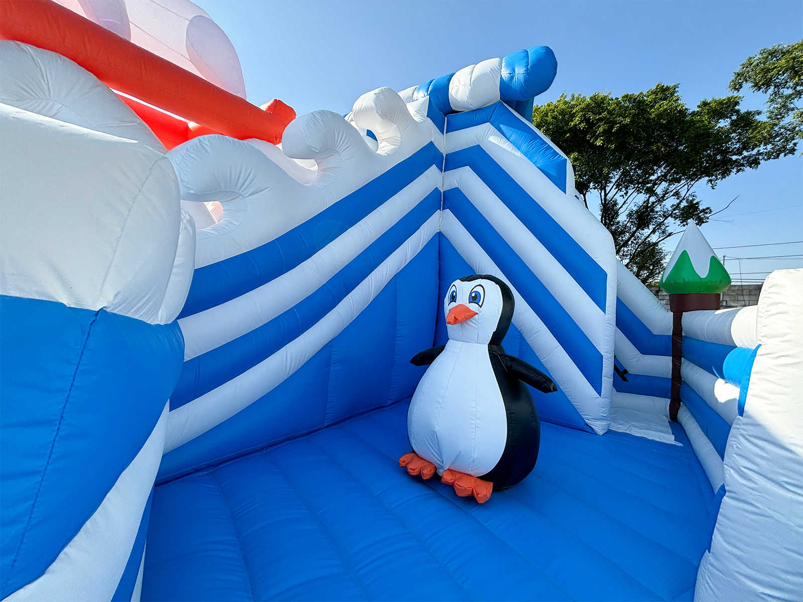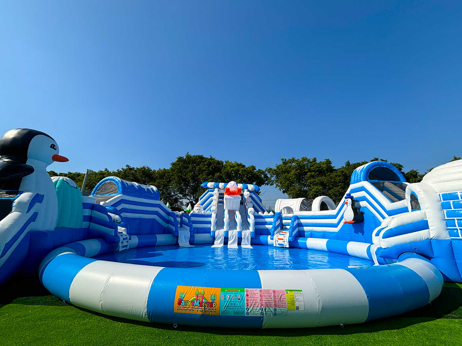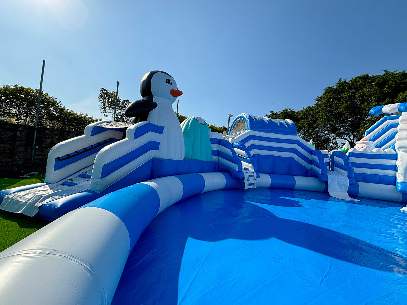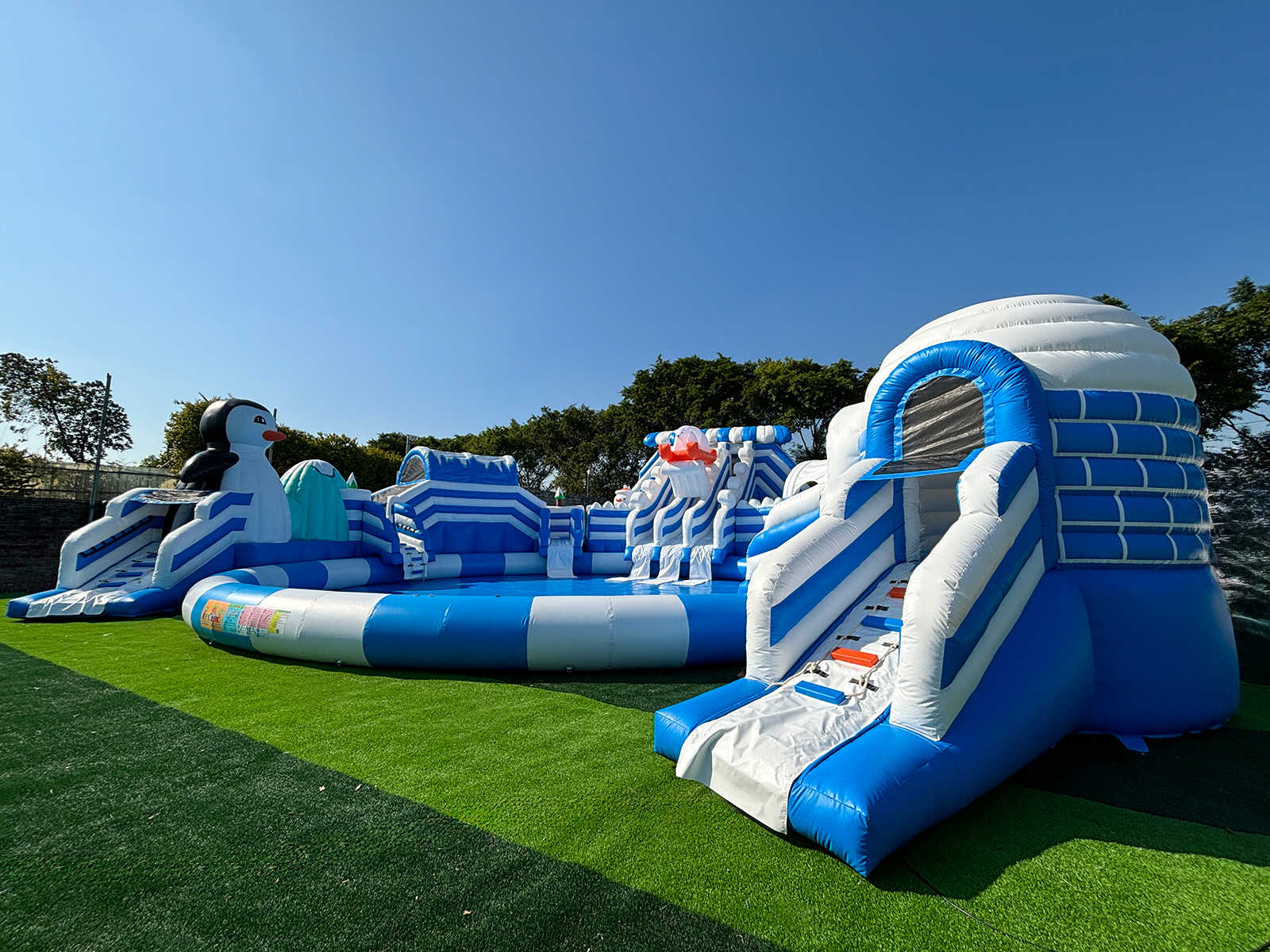 Аквапарк «Морское царство 3» — это не просто надувной аквапарк, это целый мир зимней сказки, воплощённый в масштабном водном комплексе размером 21x20x6 метров. Аттракцион создан для развлечений на свежем воздухе, идеально подходит для установки в парках, на пляжах, территориях аквапарков, гостиниц и детских лагерей. Яркий дизайн в бело-голубой гамме, фигурки пингвинов, медведей и снежных персонажей притягивают внимание с первого взгляда. Идеально для бизнеса, который хочет выделиться!