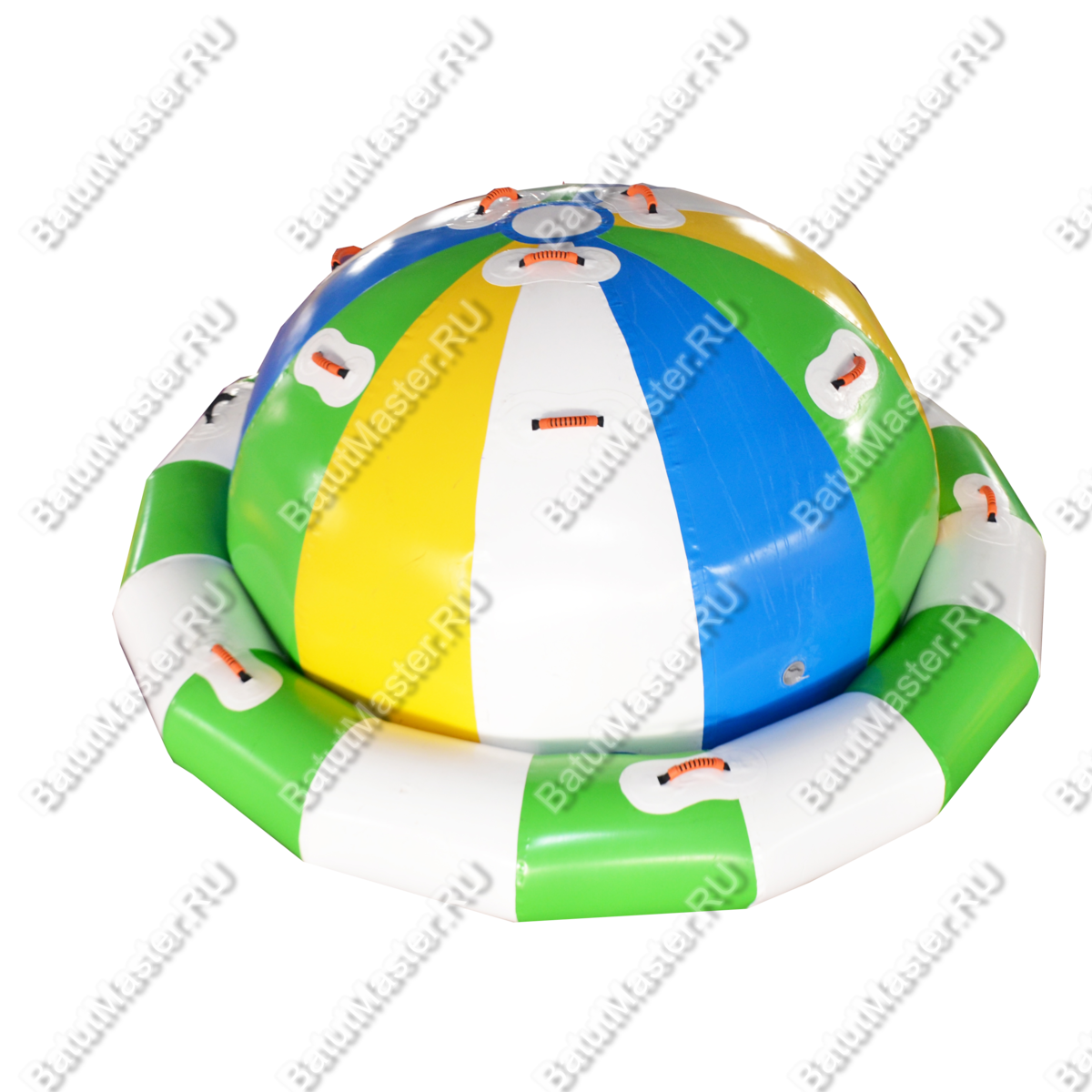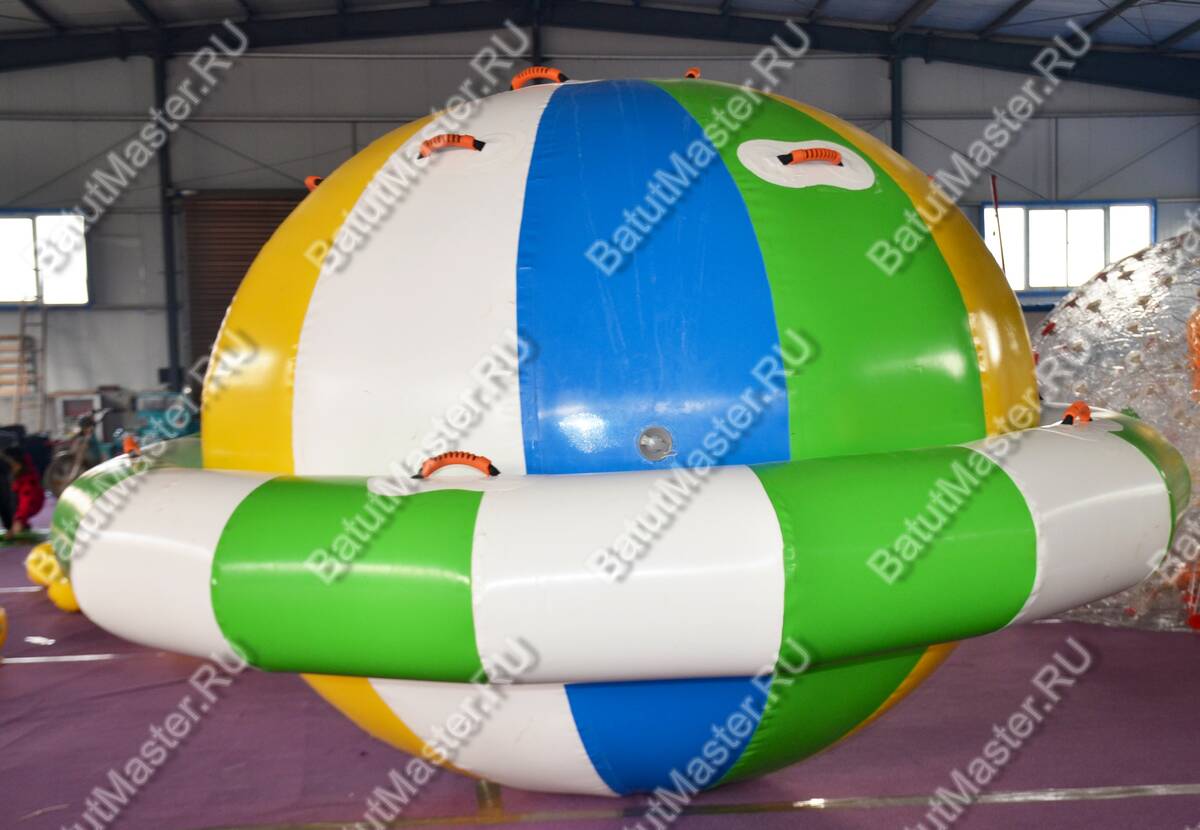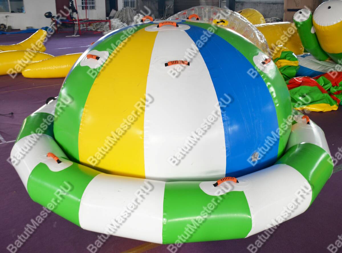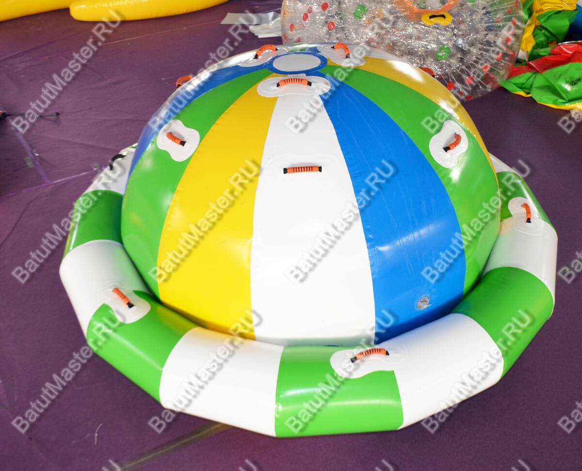 Это многофункциональный надувной элемент, предназначенный для размещения в водоёмах с глубиной от 2 метров. Куполообразная форма, яркие цвета (жёлтый, голубой, зелёный, белый) и возможность использовать модуль как качелю или балансир делают его центром притяжения в любом аквапарке. Его размер — 2.5x2.5x2.5 м — позволяет размещать конструкцию даже в компактных водных пространствах.