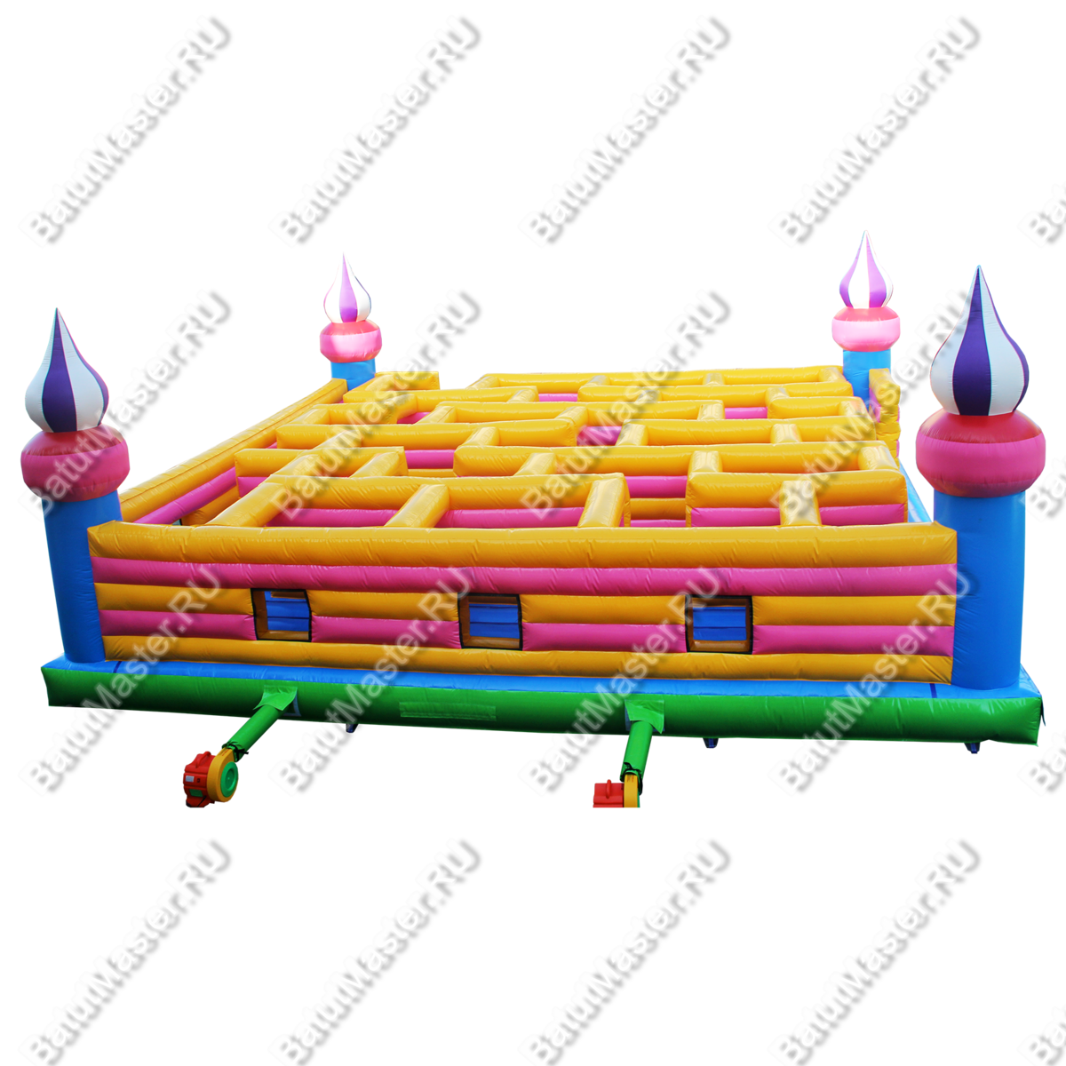Красочный лабиринт, который внешне чем-то напоминает большой десерт. Благодаря подобранным цветам аттракцион у многих будет ассоциироваться с тортиком. Несмотря на преобладание розового оттенка, в таком лабиринте захотят поиграть даже мальчишки.
