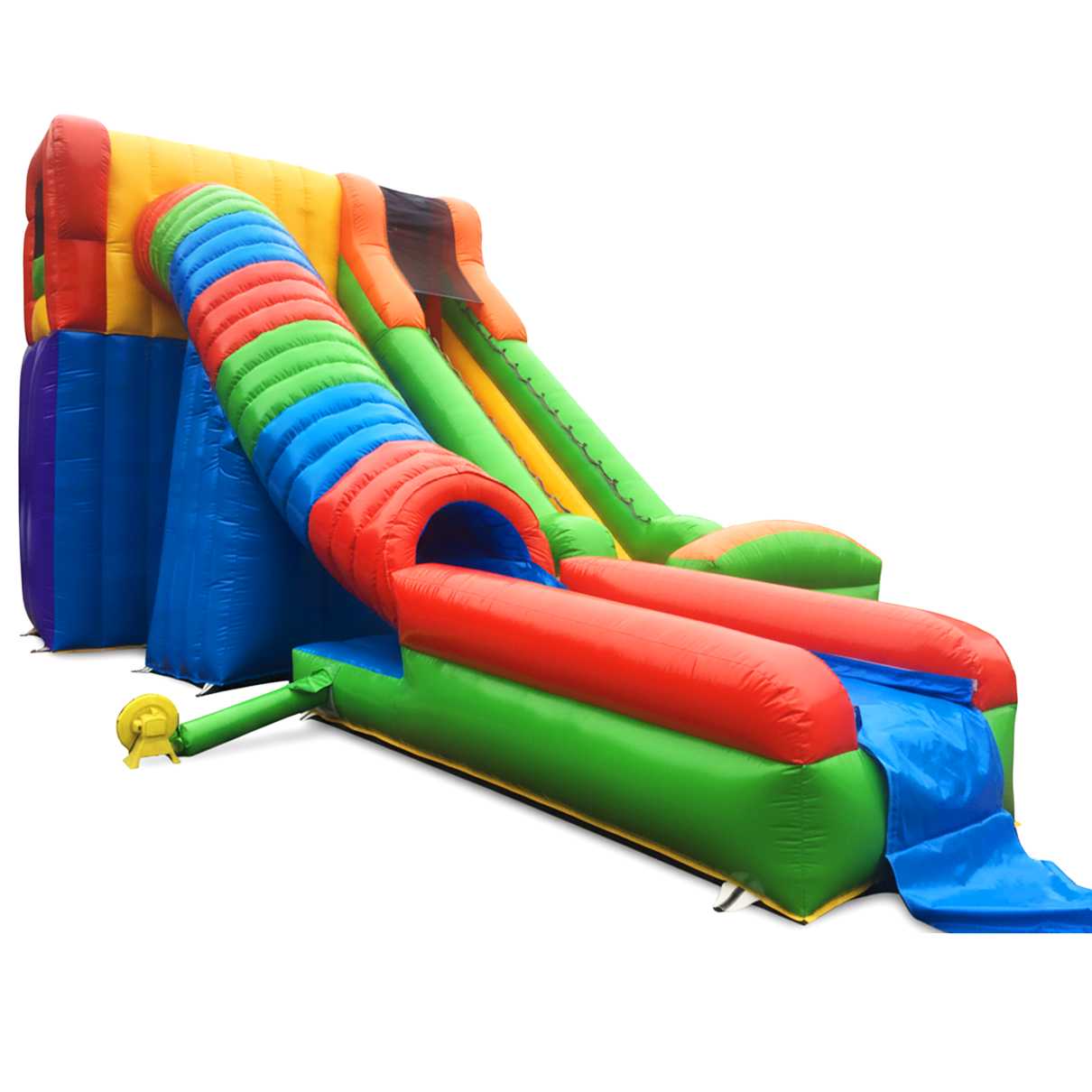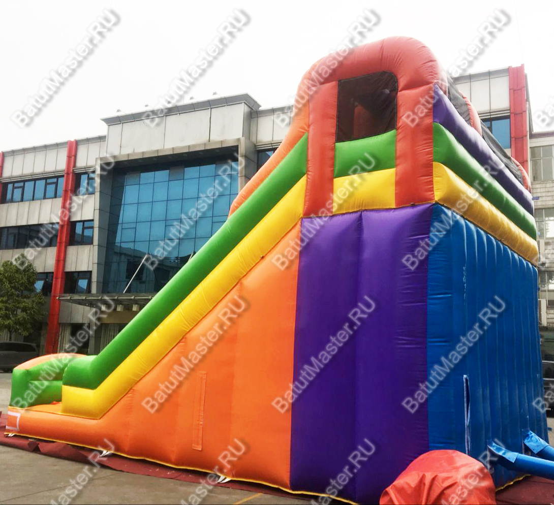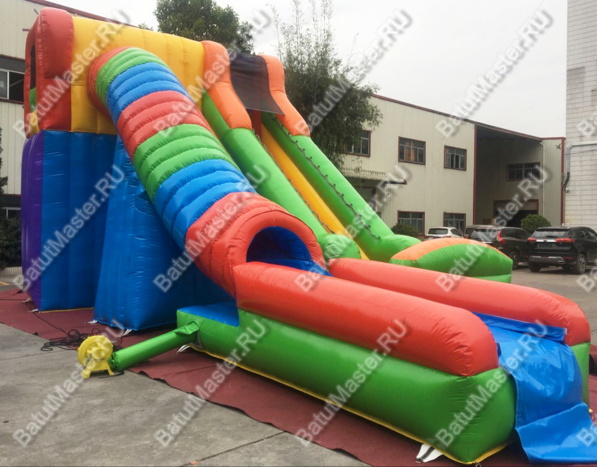 «Красочный спуск» — это эффектная надувная водная горка для бассейна, созданная специально для бизнеса в категории «НАЗЕМНЫЕ АКВАПАРКИ И ВОДНЫЕ ГОРКИ». Габариты 12x6x6 позволяют формировать заметную доминанту в парке отдыха, а радужная палитра (синий, жёлтый, красный, зелёный) притягивает внимание семейной аудитории издалека. Горка работает на постоянном поддуве: воздуходувы поддерживают стабильное внутреннее давление, благодаря чему вся конструкция сохраняет упругость, форму и геометрию ската при пиковых нагрузках. Это напрямую влияет на безопасность спуска и скорость обработки потока гостей — то, что так важно для коммерческого объекта.
