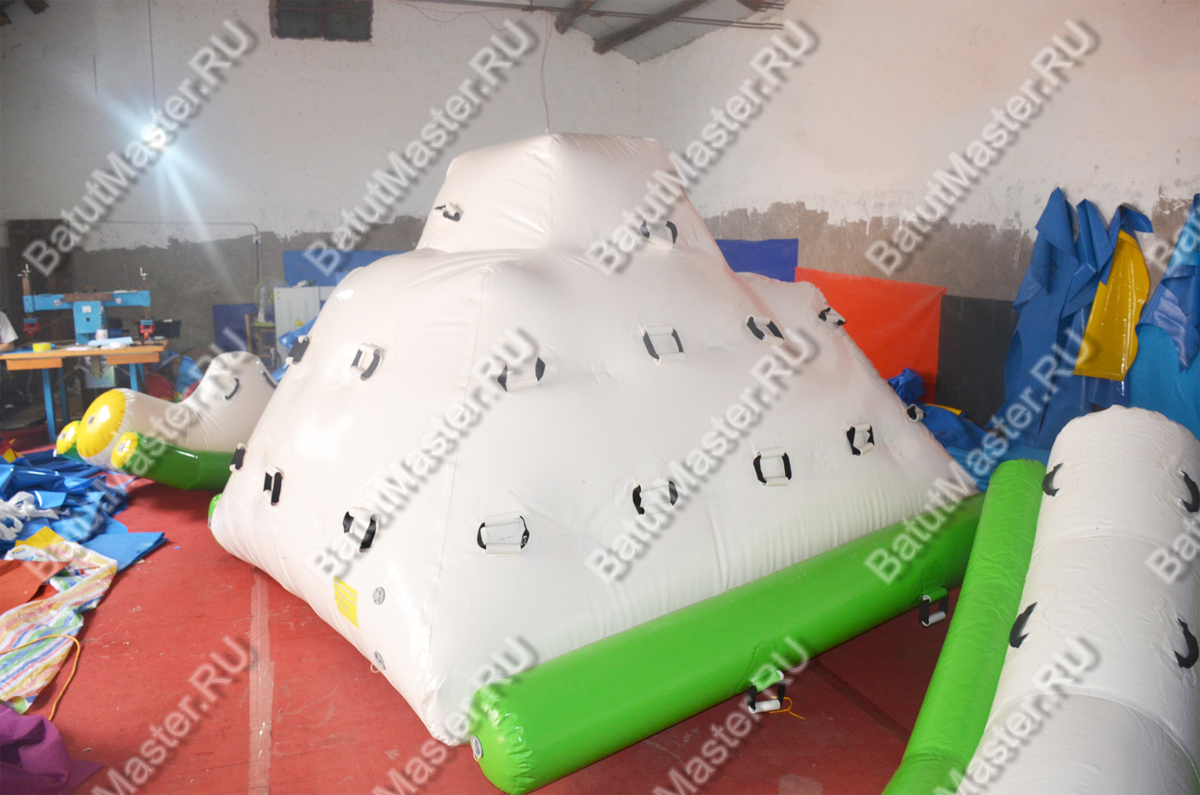 Надувной скалодром выполнен в виде айсберга с зацепами, равномерно расположенными по всей поверхности. Это не только развлечение, но и физическая активность, способствующая развитию координации и силы. Его внешний вид — белоснежная «ледяная» вершина с ярко-зелёным основанием — отлично вписывается в любую водную тематику и моментально привлекает внимание.