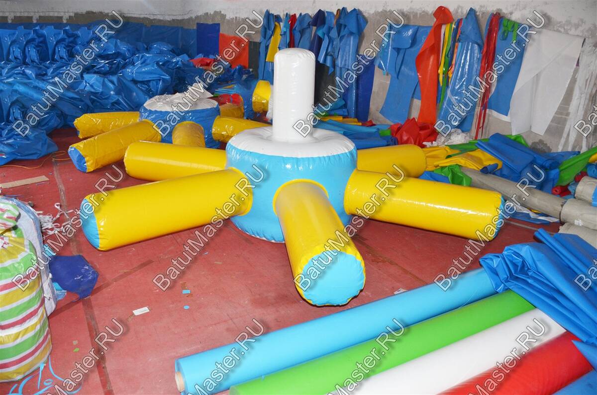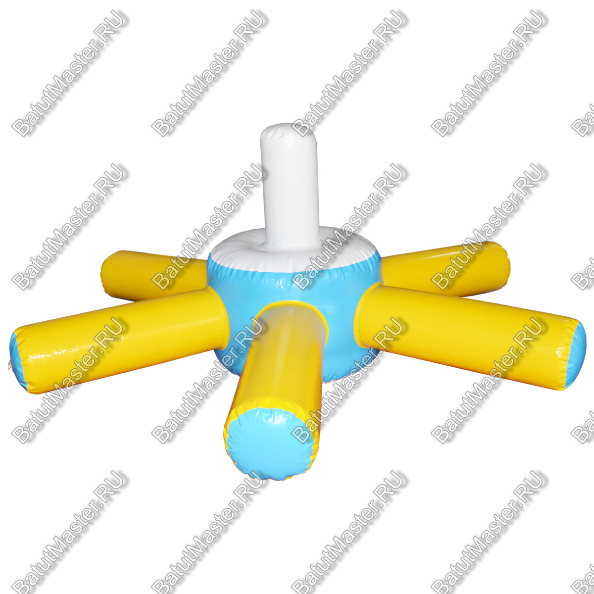 Элемент аквапарка «Яркий вентель» — это уникальный и динамичный водный аттракцион, выполненный в форме многолучевого «спрута» с центральной стойкой и шестью яркими «щупальцами». С размерами 5x5x2 метра он идеально впишется как в бассейны закрытых развлекательных центров, так и в открытые зоны отдыха у воды. Аттракцион предназначен для весёлых игр, удержания равновесия, запрыгивания, скольжения и групповых активностей.