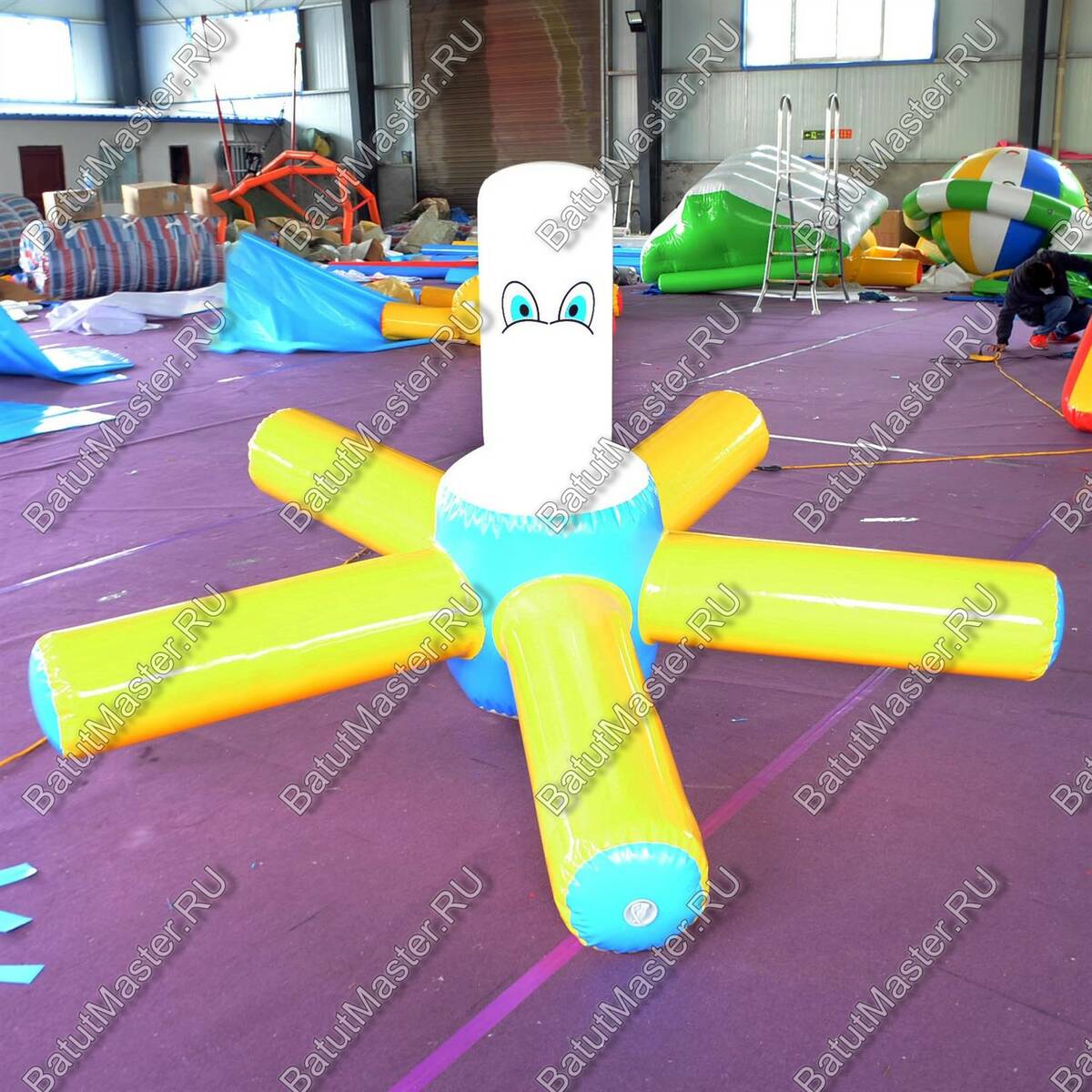 "Морская звезда 2" — это уникальный элемент наземного аквапарка, в котором сочетаются яркий дизайн, надёжная конструкция и высокая функциональность. Аттракцион представляет собой круглую платформу с шестью разнонаправленными балансирами и центральной фигурой, оформленной в мультяшном стиле. Элементы балансира создают игровую зону, где дети могут прыгать, сидеть, ползать, пробовать свои силы в удержании равновесия — и всё это на воде!