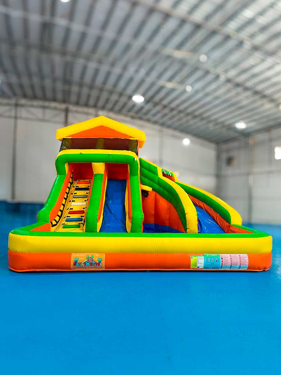 «Домик на пляже» — это уникальный батут с бассейном и водной горкой, который переносит детей в атмосферу морского веселья и яркого лета. Размеры 5x5x4 м делают его компактным, но при этом достаточно вместительным для активных игр группы детей. Идеальное решение для бизнеса в сфере детских развлечений.