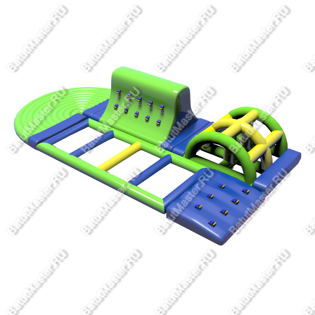 Элемент «Островок» создан для бизнеса, ориентированного на детскую и семейную аудиторию. Этот модуль станет центральной частью любой водной игровой зоны, вызывая восторг и азарт у детей и подростков. Конструкция сочетает в себе скалодром, несколько видов мостиков, трамплин и арочные туннели — каждый из этих элементов стимулирует двигательную активность и развивает ловкость. Игры на воде превращаются в настоящий квест! 🎯