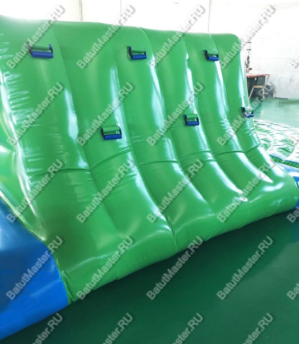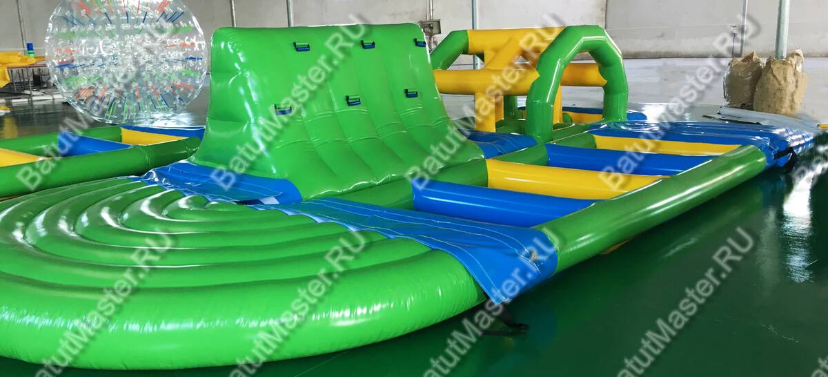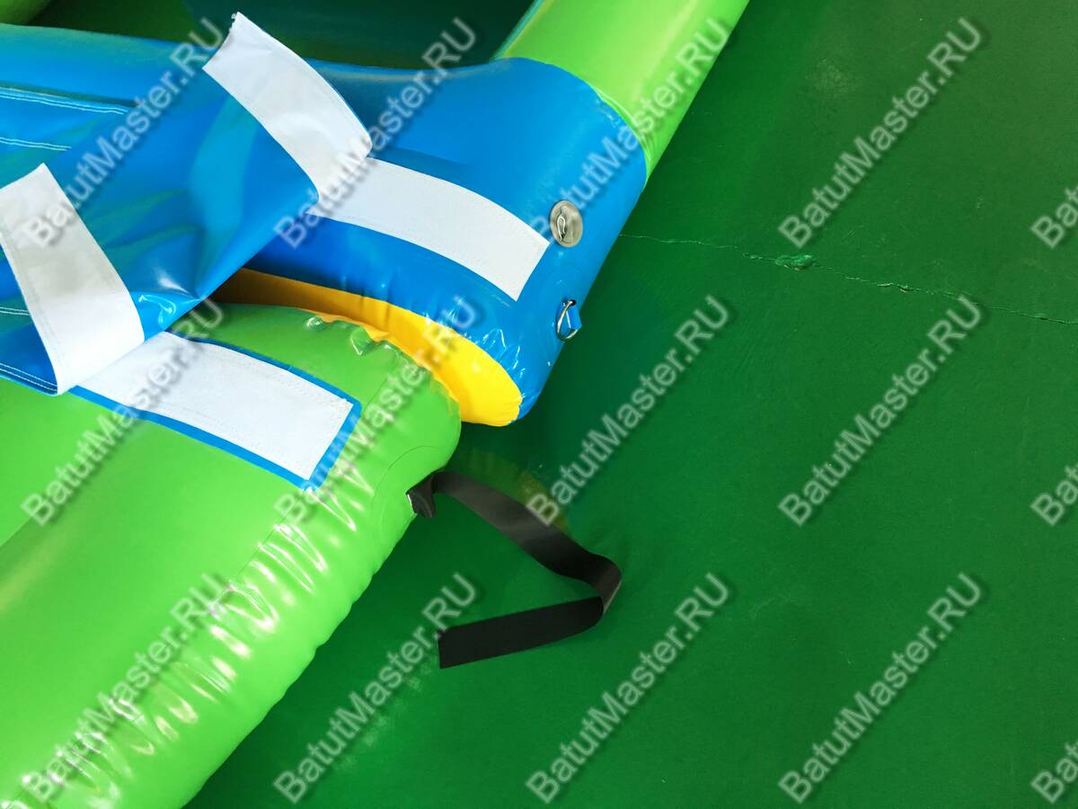 Размер конструкции — 8x4x2 метра — позволяет разместить её как в крытых бассейнах, так и на открытых водоёмах. Прочная структура из армированного ПВХ выдерживает интенсивную эксплуатацию в течение нескольких сезонов. Цветовая палитра — яркие жёлтые, зелёные и голубые оттенки — делает модуль заметным издалека и привлекательным для детей.