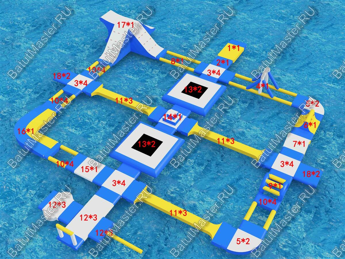 Это уникальное сооружение водных аттракционов, состоящее из нескольких модулей. Надувные модули собираются в любой последовательности, создавая персональный водный комплекс.