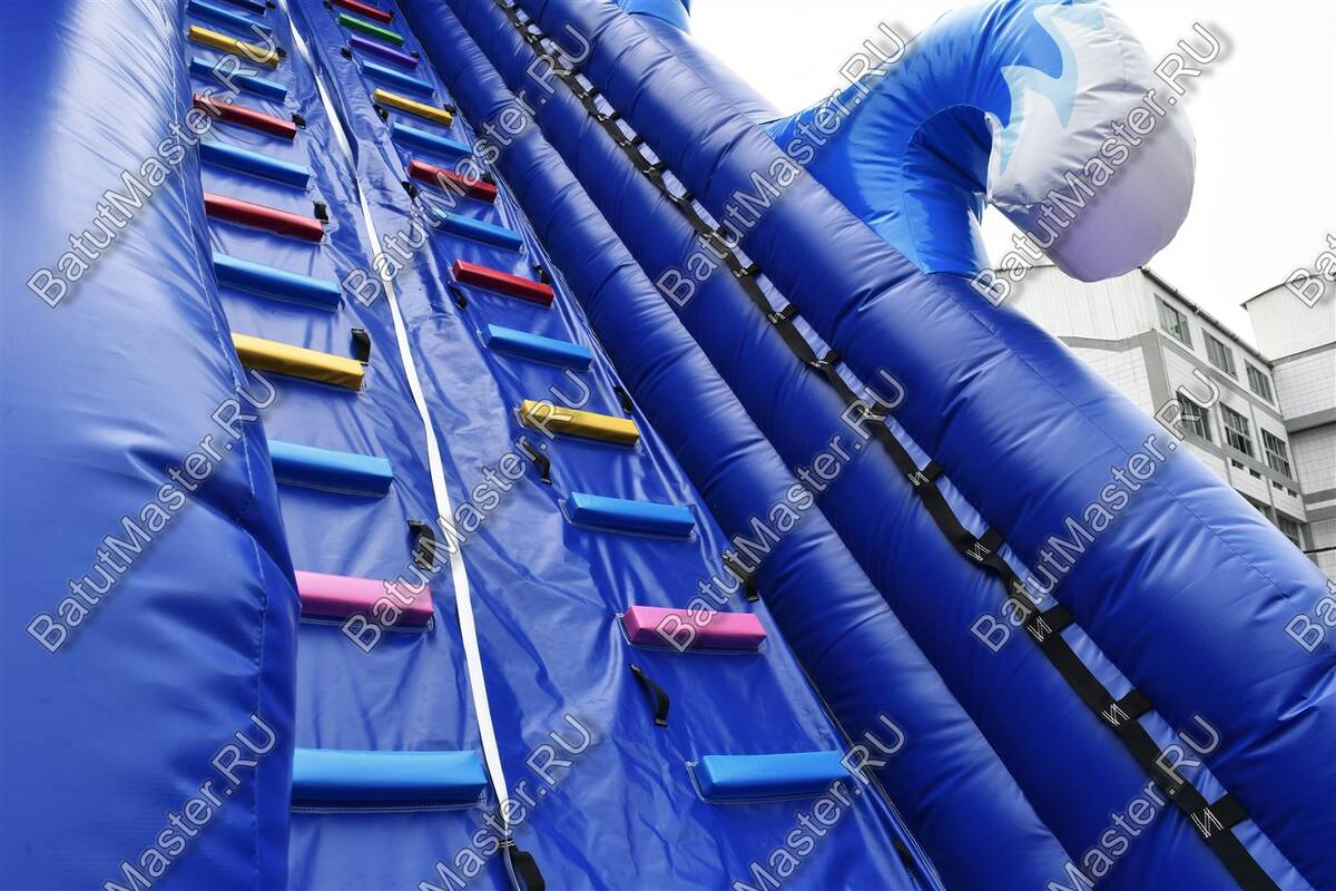 Бассейн размеры которого соизмеримы с задачами коммерческой площадки, формирует полноценную игровую зону с общим водным объёмом порядка сорока с лишним кубометров. Глубина финиша оптимальна для торможения и комфорта, а широкая водная гладь визуально расширяет комплекс, добавляя места для интерактива и фотоконтента. Благодаря надувным бортикам и плавным сопряжениям элементы не имеют жёстких кромок, а тактильно приятная армированная ПВХ-ткань выдерживает сезонную нагрузку и регулярную дезинфекцию. Материал рассчитан на коммерческое использование: плотность доходит до верхнего диапазона, а толщина варьируется в пределах, достаточных для усиления наиболее нагруженных узлов. Диапазон рабочих температур позволяет уверенно открывать сезон с нулевых значений воздуха и не беспокоиться о перегревах до середины лета: поверхность не «плывет», держит форму, фурнитура работает стабильно.