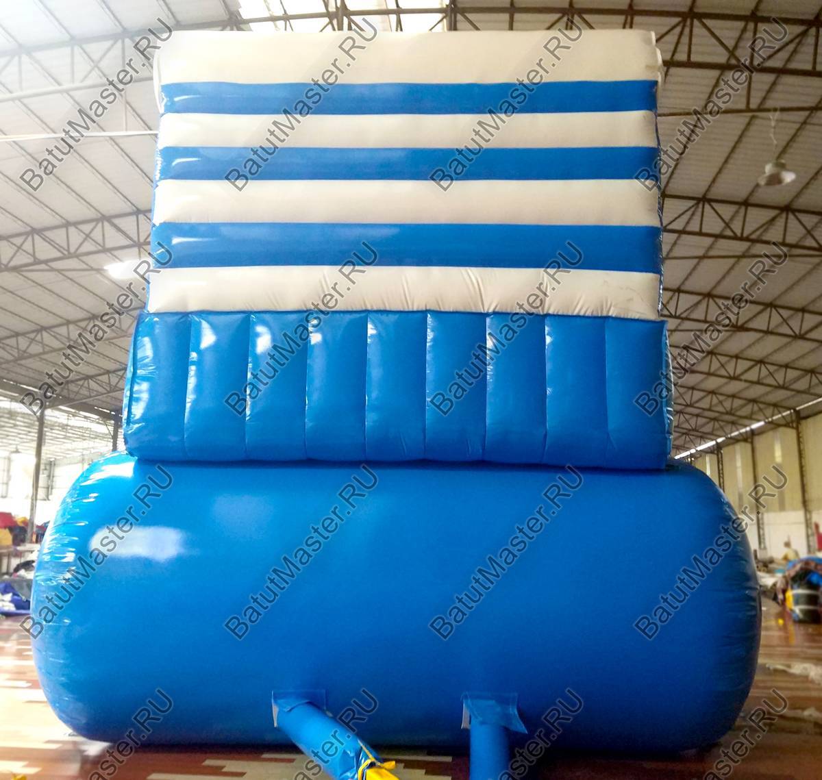 Коммерческий надувной водный батут-аквапарк «Пляжный оазис» сочетает зрелищность и продуманную инженерию, чтобы стабильно зарабатывать в сезон и создавать эффект «вау» для семейной аудитории. Общие габариты комплекса — 13×4,5×6 м — позволяют комфортно разместить аттракцион как на открытых пляжных территориях у моря, озёр и рек, так и в городских парках, на летних площадках ТРЦ или внутри крытых зон с хорошей вентиляцией. Это готовое решение для бизнеса, которому требуется быстро привлечь поток посетителей: горка с высотой старта около 4 м заметна издалека, а мягкие формы и яркая цветовая схема (голубой, жёлтый и белый) сразу транслируют атмосферу отпуска.