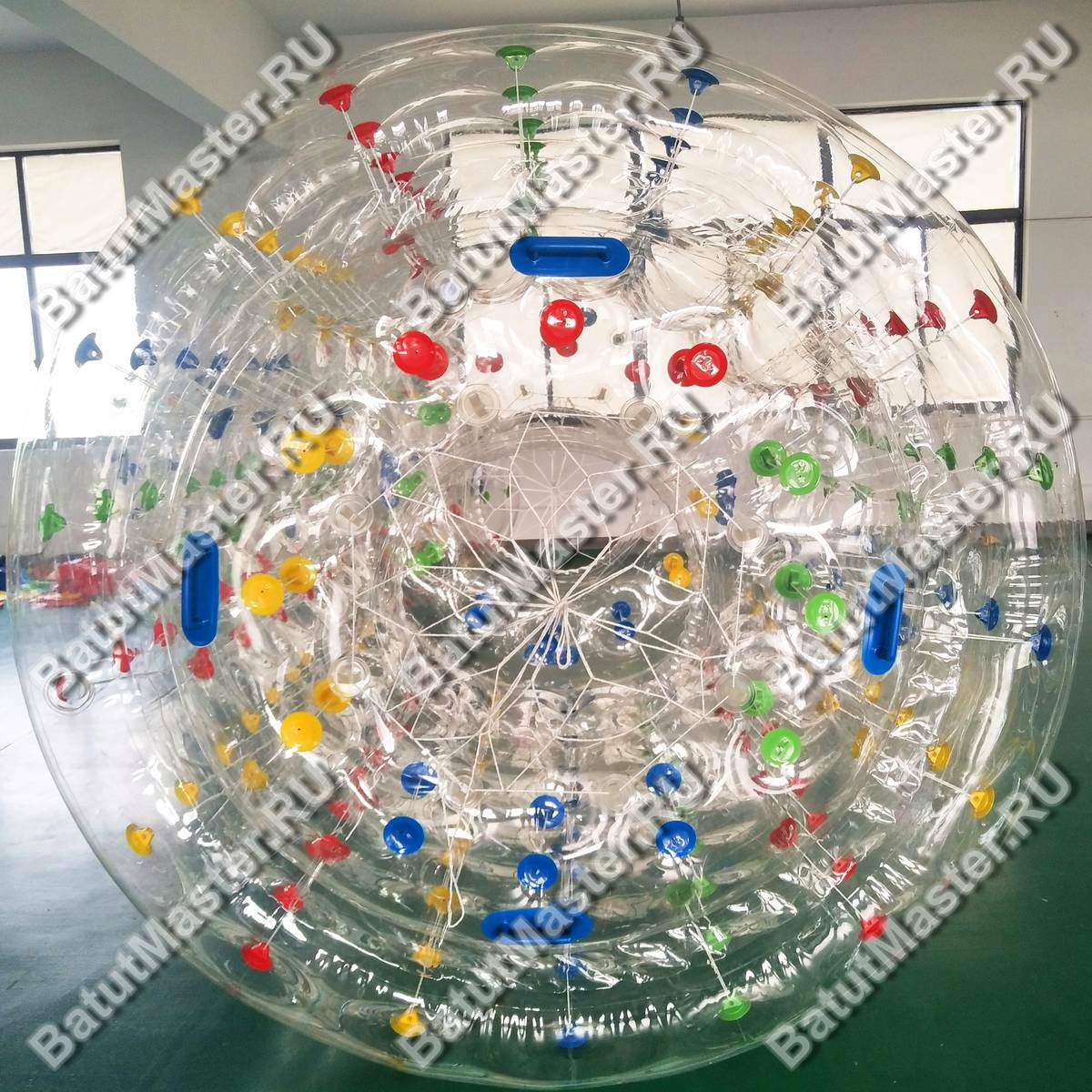 Это уникальный формат развлечений: надувной цилиндр из усиленного прозрачного ТПУ длиной 2 м и диаметром 1,8 м. Внутри легко размещаются два человека, которые бегут и вращают роллер по воде, словно хомячки в колесе! Такая конструкция дарит море смеха и драйва, а за счёт ярких акцентов (красный и зелёный элементы) ваш аттракцион будет заметен издалека — отличный способ выделиться среди конкурентов.