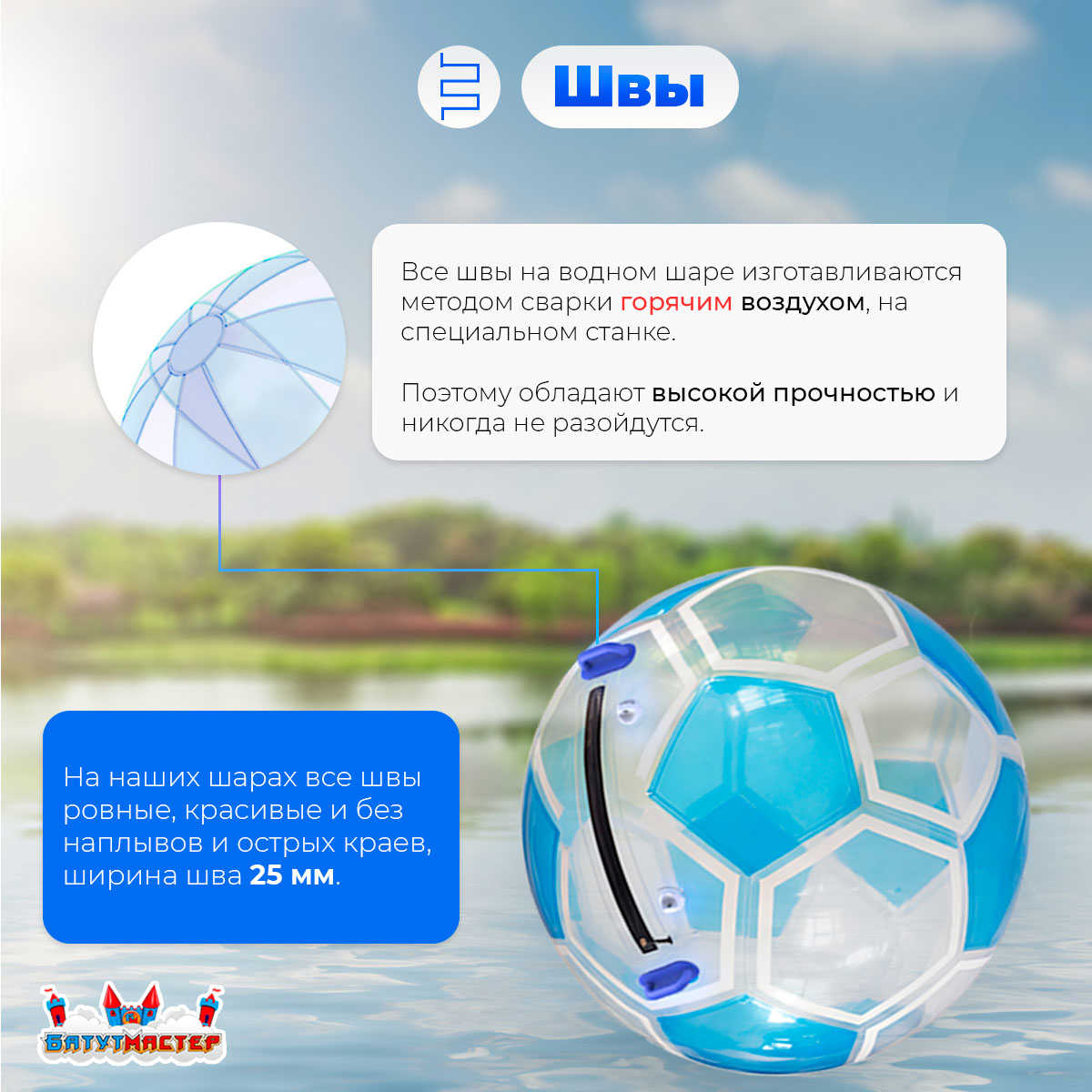 Преимущества водного шара «Голубой Футбол»: