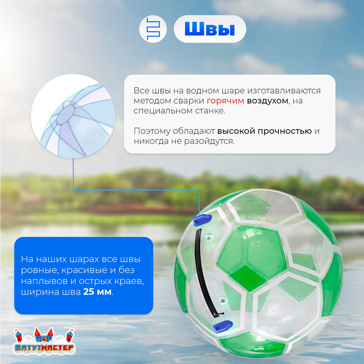 Это безопасный, зрелищный и необычный способ развлечения. В отличие от других водных аттракционов, шар позволяет оставаться сухим, находясь прямо на воде. Это делает его особенно популярным среди детей, подростков и родителей.