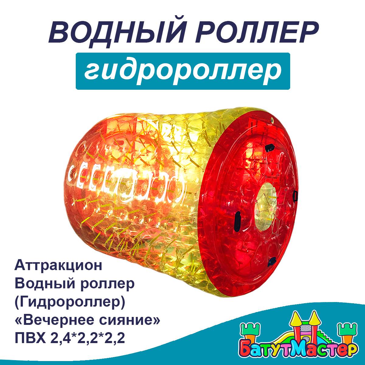 "Вечернее сияние" — это не просто водный аттракцион, а настоящий магнит для клиентов. Этот цилиндр из усиленного прозрачного ПВХ длиной 2,4 м и диаметром 2,2 м легко размещает двух человек, превращая процесс плавания в увлекательное приключение. Внутри — комфортное пространство, с обеих сторон — удобные отверстия для входа и выхода.