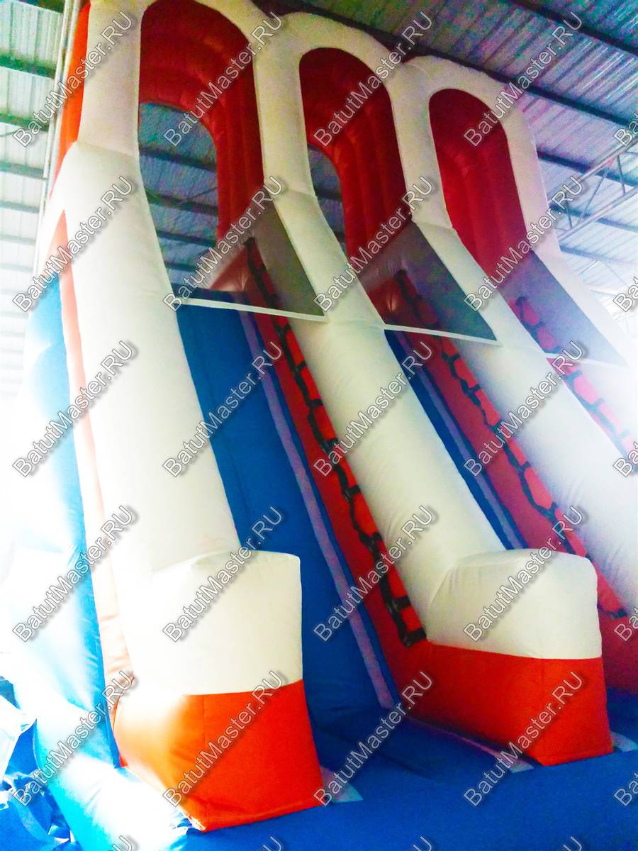 Безопасность продумана до мелочей: стартовая площадка защищена бортиками и верхней сеткой, боковые стены скатов удерживают траекторию, а входной пандус облегчает доступ и помогает операторам регулировать потоки. За счёт умеренной стартовой высоты 2,5 м и строго направленного профиля «жёлоб» достигается оптимальная скорость — достаточно быстро, чтобы было весело, и достаточно мягко, чтобы исключить нежелательные перегрузки. В комплект входит всё для запуска — надувная оболочка, насосы/вентиляторы, чехол для хранения, ремнабор — а также русскоязычное руководство по эксплуатации и паспорт изделия по ГОСТ, сертификат на насос и декларация соответствия требованиям ТР ЕАЭС 038/2016 «О безопасности аттракционов». Сервисная поддержка включает гарантийный срок 24 месяца, а конструкция допускает любые разумные кастомизации: изменение цвета под фирменный стиль, нанесение логотипов, масштабирование по длине, ширине и высоте под параметры площадки.