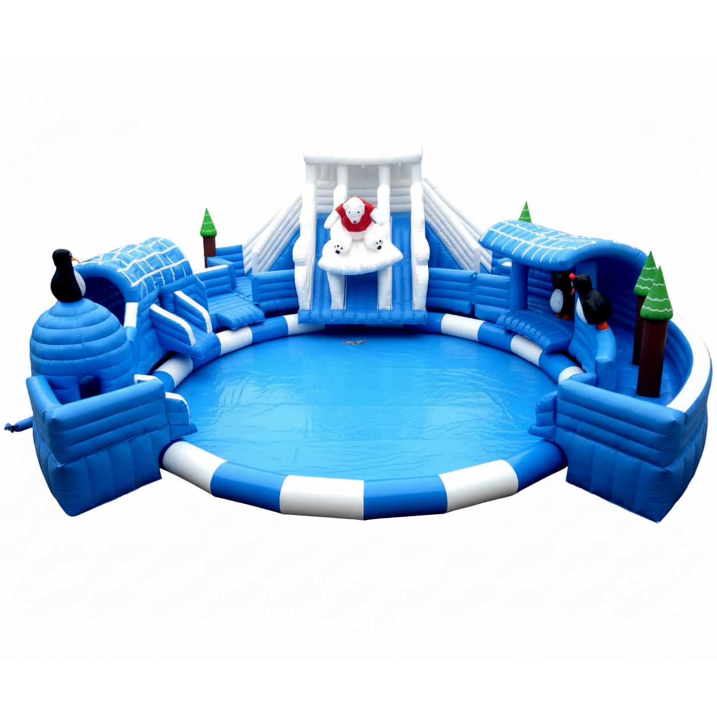 Сценарии размещения практически не ограничены: стационарные аквапарки и парки развлечений, базы и дома отдыха, пансионаты и отели с открытыми бассейнами, семейные парки и летние площадки у ТРЦ, рекреационные зоны и частные участки с бассейном, мобильные водные парки в формате аренды, городские фестивали и детские праздники. Конструкция одинаково удобна для сезонного «длинного» размещения и для краткосрочных ивентов: монтаж и демонтаж занимают минимум времени, а транспортировка упрощается за счет модульности и защитных чехлов из комплекта.