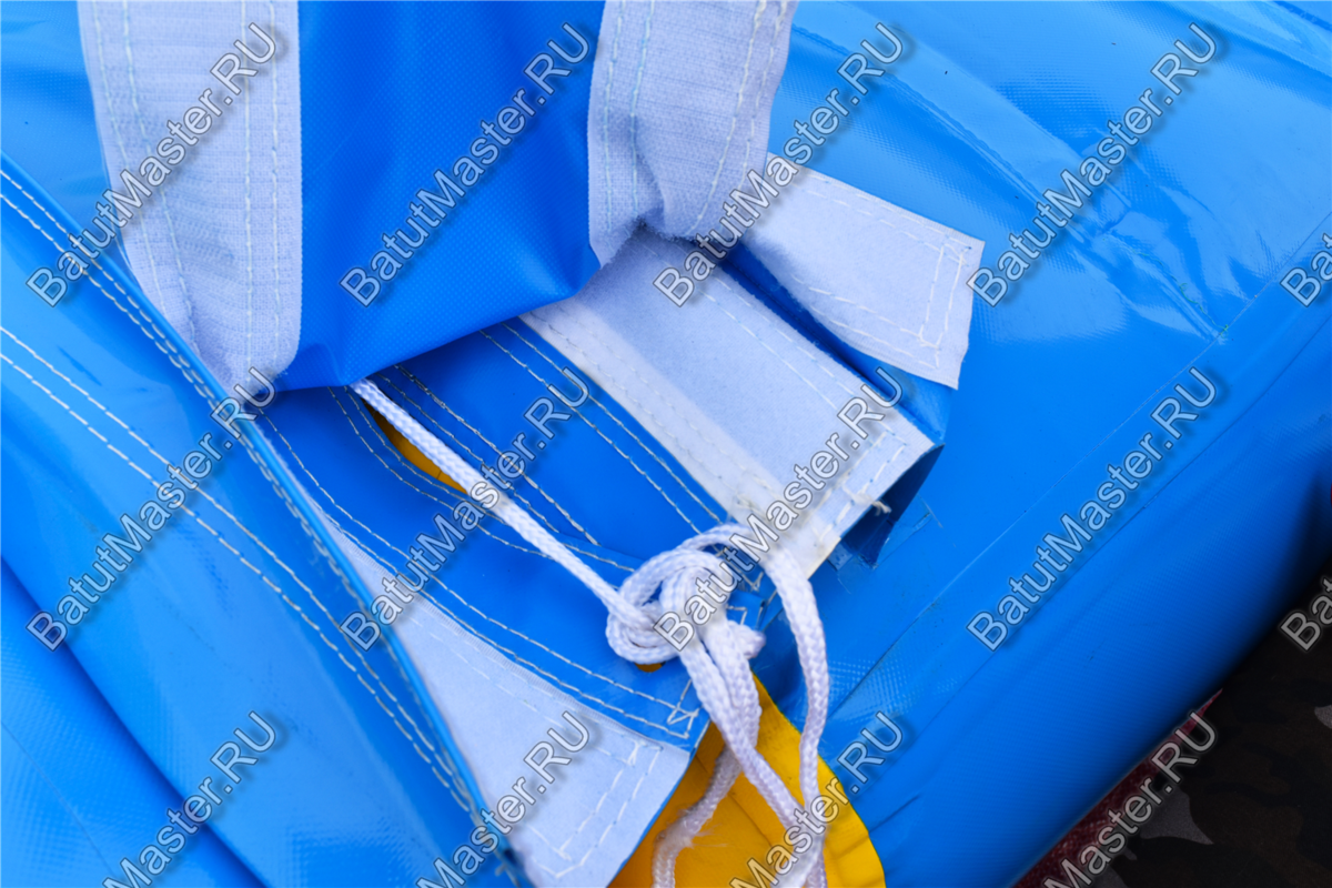 Все водные аттракционы компании БатутМастер изготавливаются методом сварки внахлест на специальном станке. Ширина сварного шва – от 2.5 до 5 сантиметров.