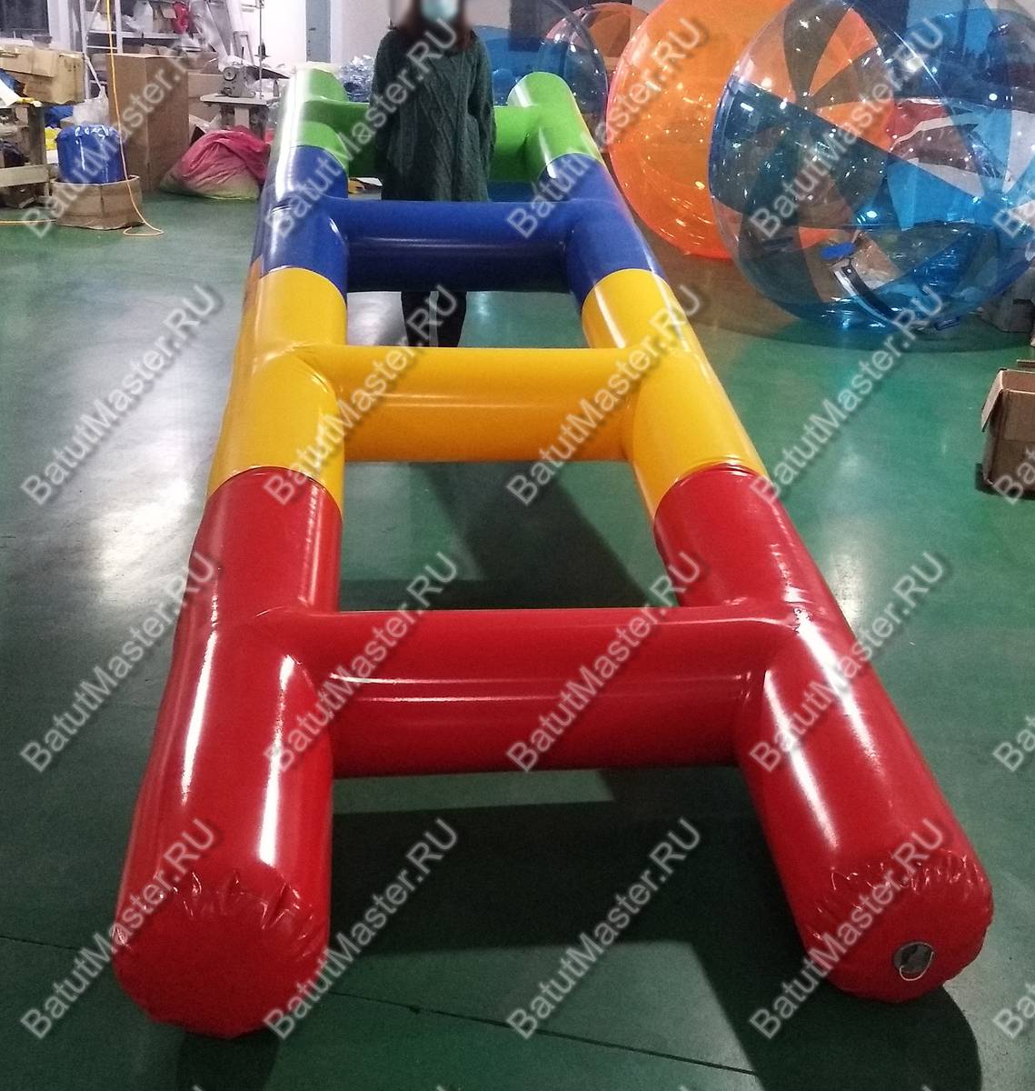 Изготовленная из прочного ПВХ разного цвета надувная лестница может использоваться по-разному – как путь к покорению вершин, как снаряд между супеньками которого можно разместиться целой команде и дружно пронести этот аттракцион до пункта назначения. А сколько еще игр и занимательных идей, которые вы сможете придумать самостоятельно?