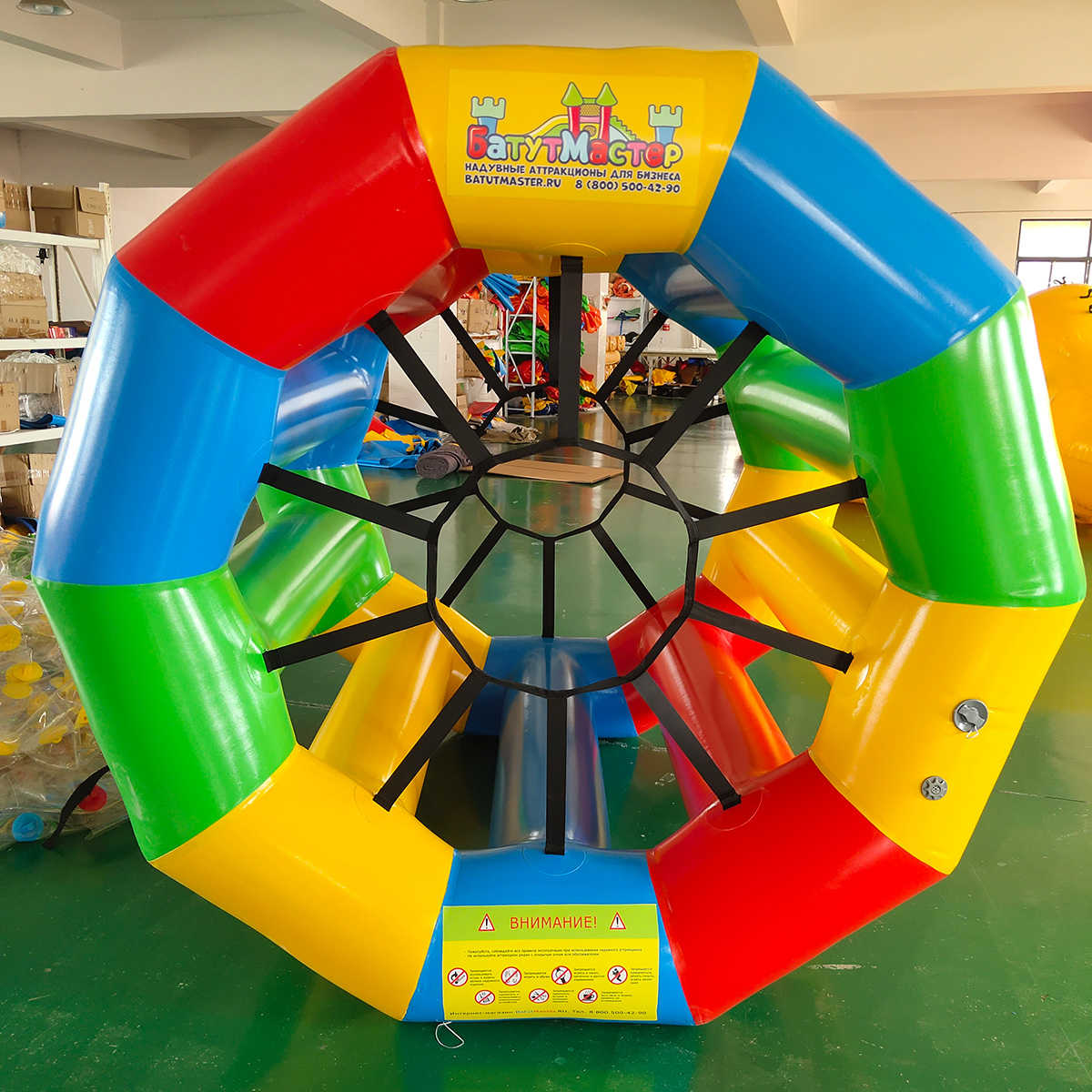 Изготовлен из прочного армированного ПВХ, колесо не боится активного использования, резких движений или погодных сюрпризов. Аттракцион рассчитан на одного участника одновременно, что обеспечивает максимальную безопасность и комфорт при использовании. Оно выдерживает до 90 кг нагрузки, а значит, подойдёт для детей разных возрастов. Швы сварены внахлест, что гарантирует герметичность и длительный срок службы — минимум технических забот, максимум пользы.
