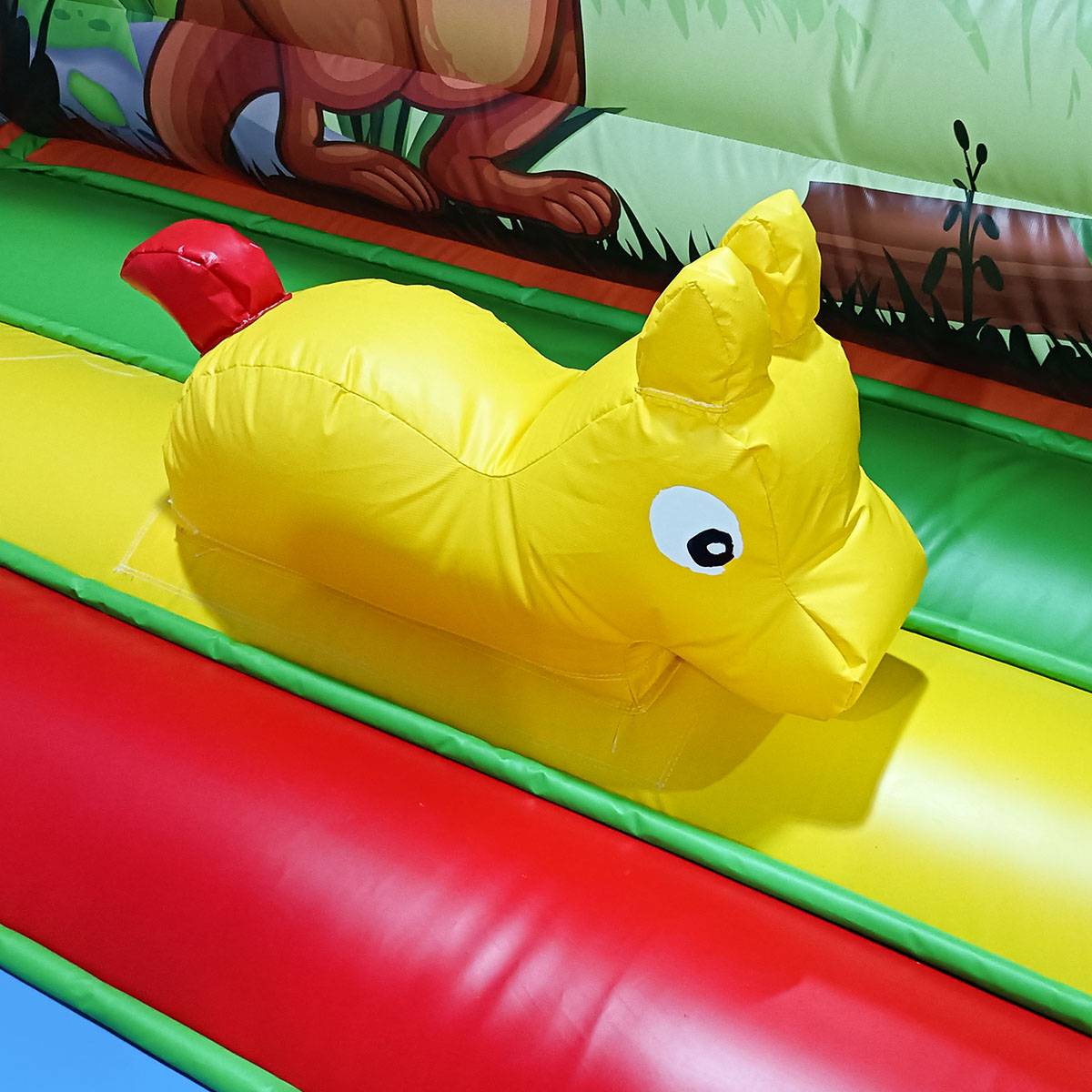 Отличительным моментом данной модели можно назвать насыщенные изображения животных, которые, несомненно, привлекают к себе внимание. Фигурки и картинки расположены по всей поверхности аттракциона, что делает его ярким и красочным. Такую забаву можно предложить самым маленькими посетителям, поскольку закрытые стены предотвращают выпадение крошек за борта, а сетчатые окошки позволяют следить за активными играми малышей.