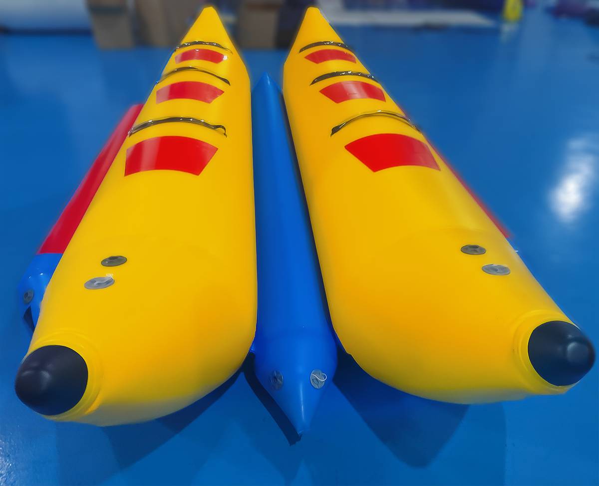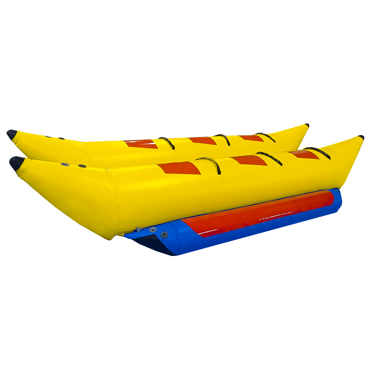 Банан выполнен в ярких цветах — жёлтый, красный, голубой — отлично виден на воде и снегу, моментально привлекает внимание клиентов и повышает безопасность за счёт высокой видимости.