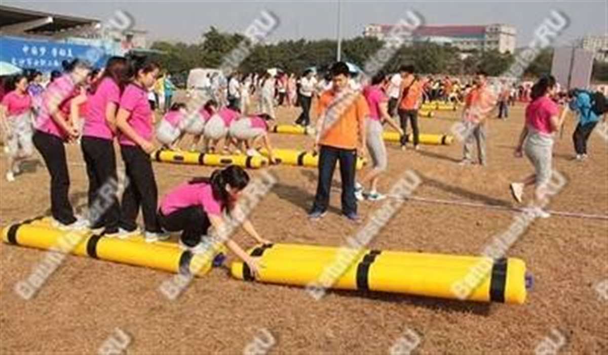 Он представляет собой большие надувные маты по бокам которых находятся держатели. Суть их использования состоит в том, чтобы участники двух команд переставляли маты, на которых стоят и таким образом им необходимо добраться до финиша. Выигрывает та команда, которая быстрее всех переместит два мата.
