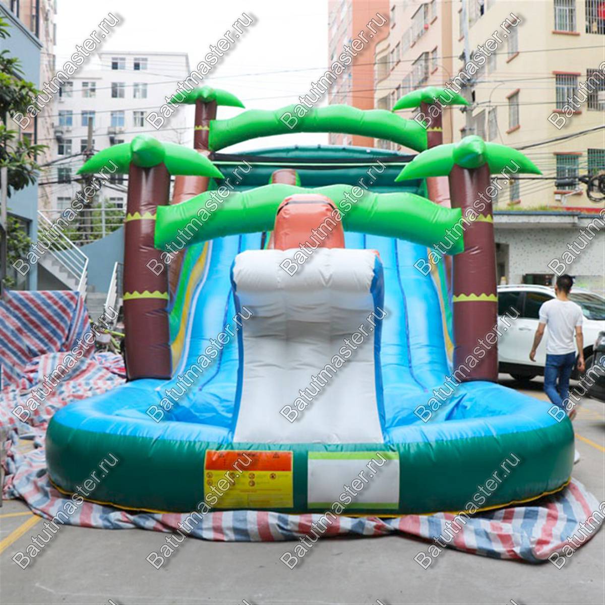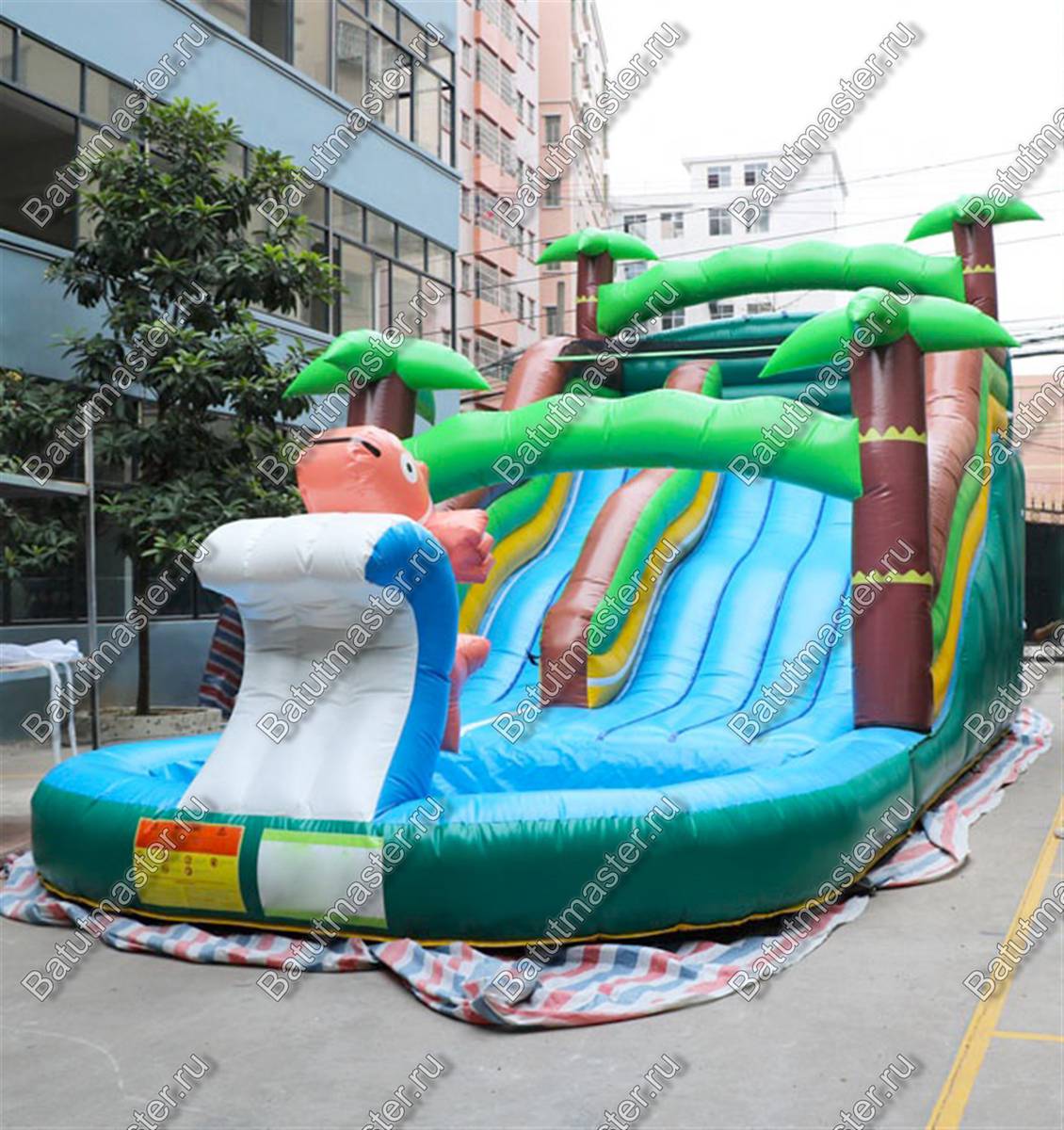 Водная горка с бассейном «Пальмовый рай мини» 7x5x5 м — это компактный, но эффектный аттракцион, способный подарить ощущение настоящего отпуска. Её дизайн в виде зелёных пальм и морских волн переносит гостей в атмосферу солнечного пляжа, даже если мероприятие проходит в центре города. Она создаёт праздничное настроение, визуально притягивает внимание и становится центральной точкой любой зоны отдыха.