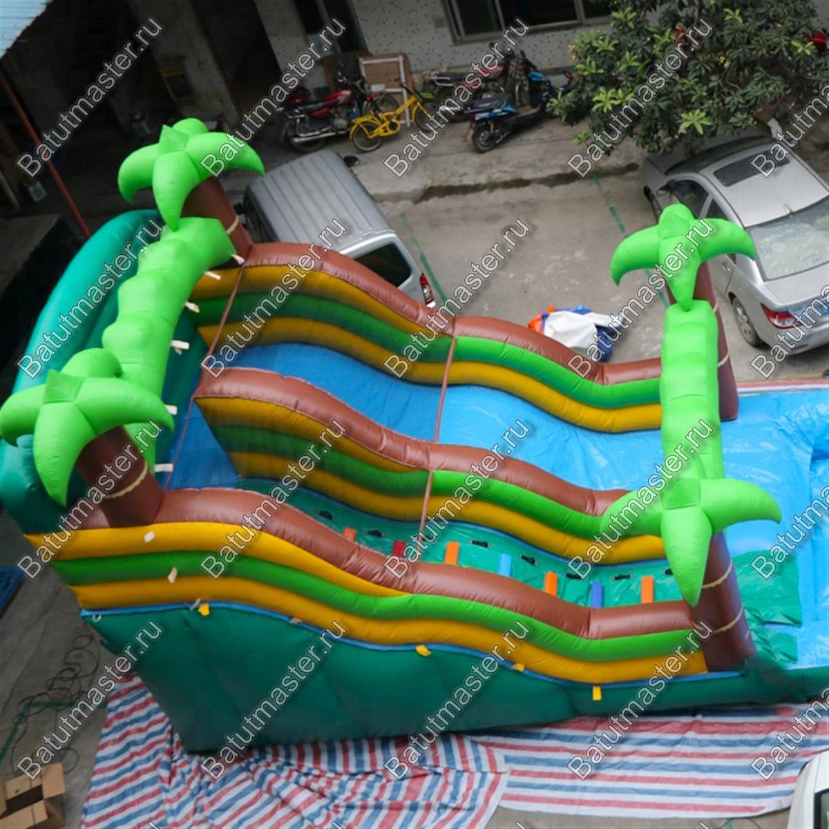 Главная особенность «Пальмового рая мини» — сочетание компактности и зрелищности. При размерах 7x5x5 м он не требует большой площади, но при этом обеспечивает динамику, веселье и безопасность. Верхняя часть конструкции украшена объемными пальмами, а внизу расположен бассейн, куда плавно спускаются участники.