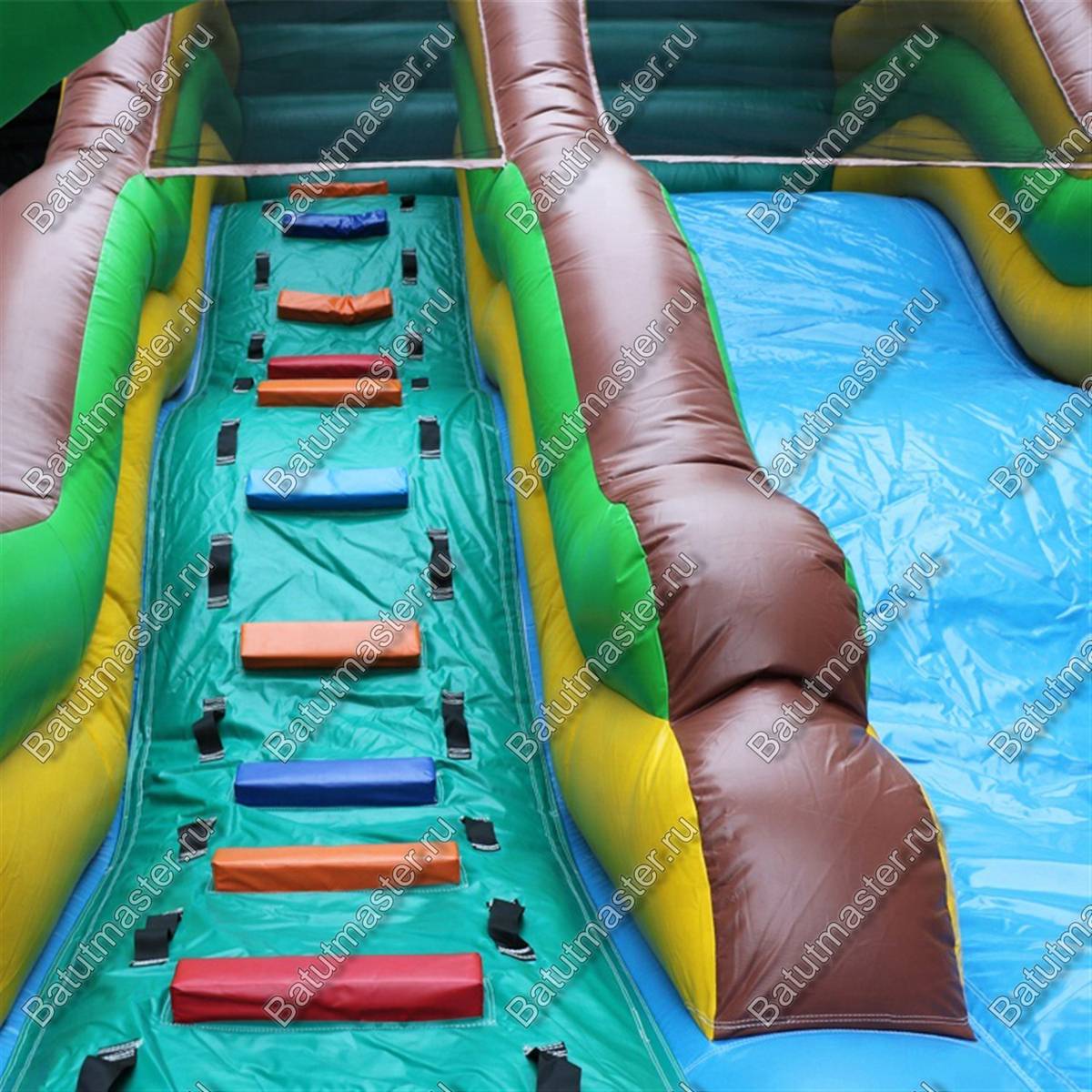 Безопасность — один из главных приоритетов этого аттракциона. Все элементы выполнены из эластичных и ударопрочных материалов. Мягкие борта защищают от случайных падений, а нижний бассейн смягчает приземление.
