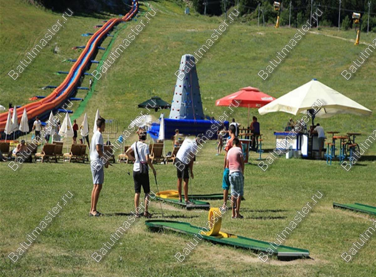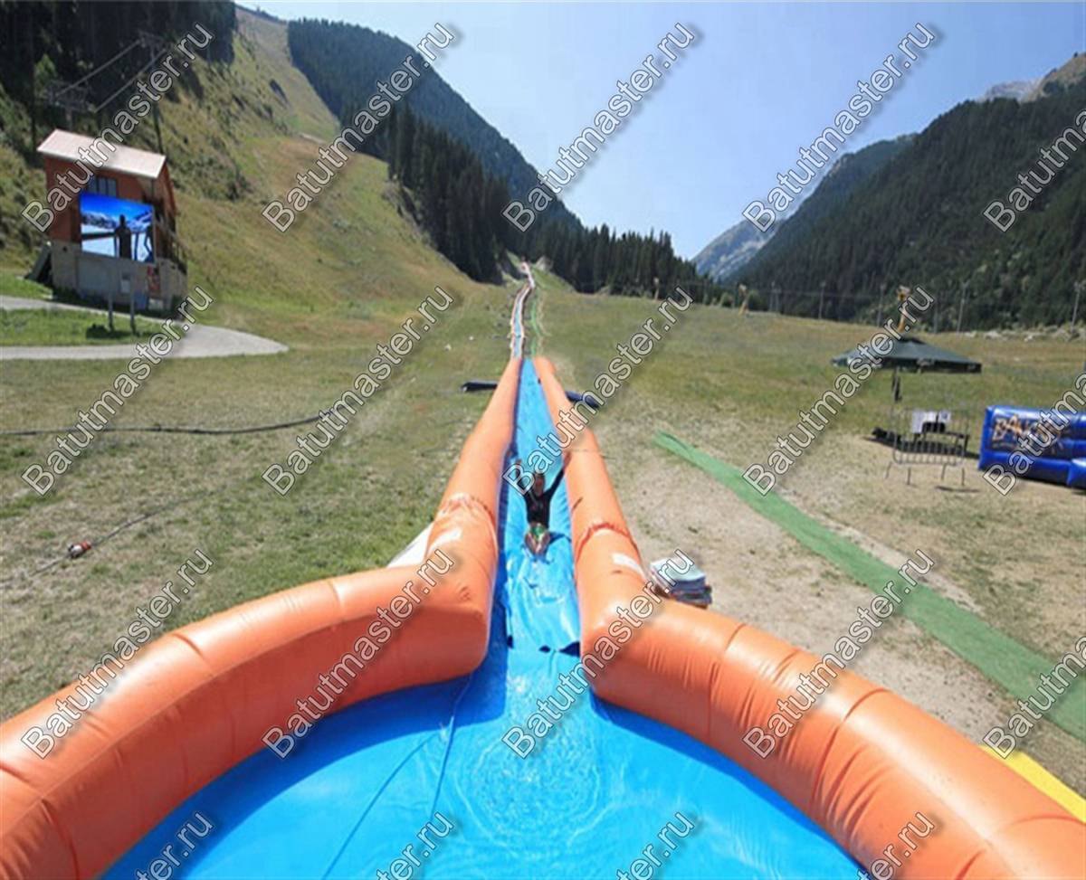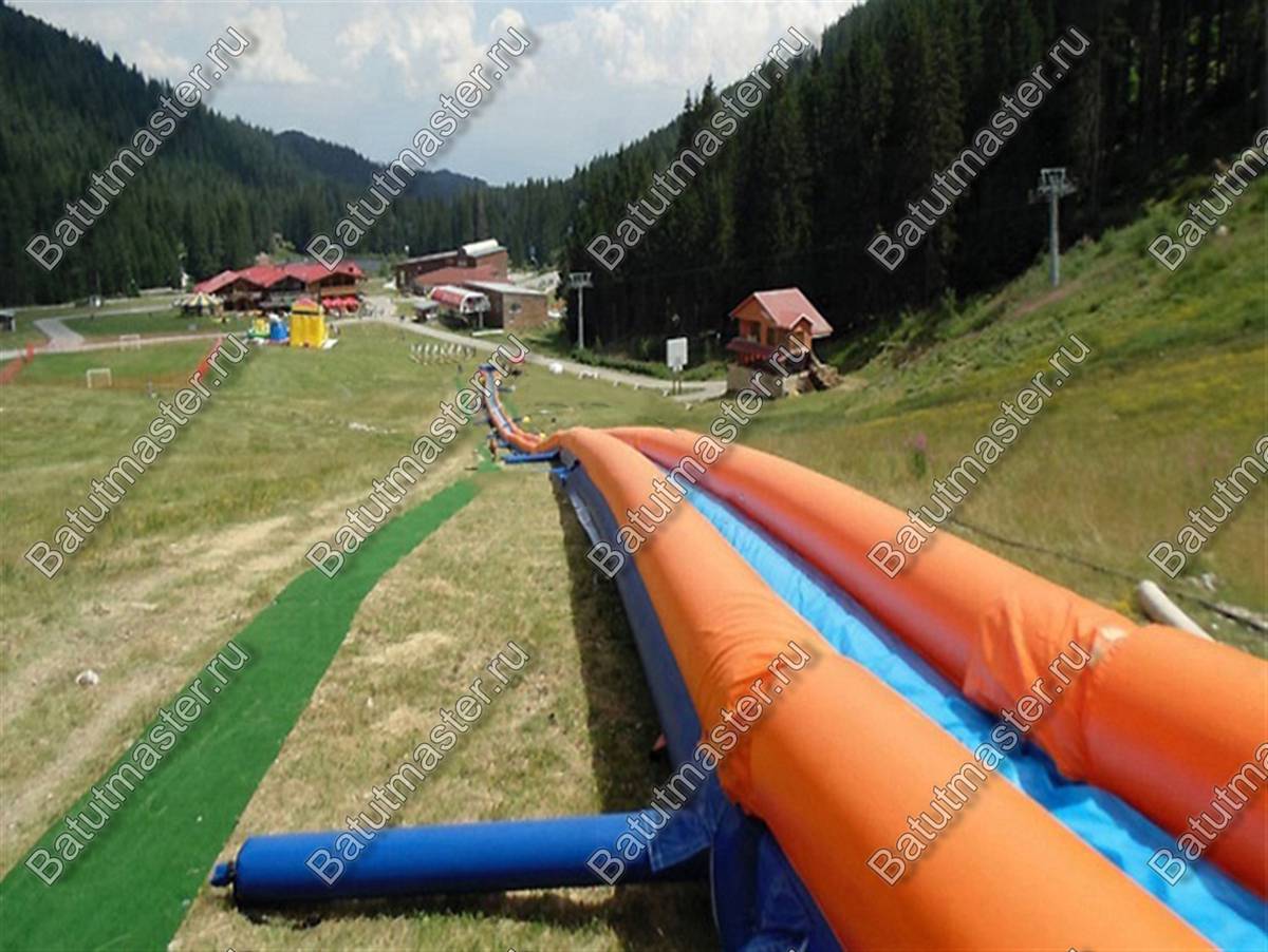 С её помощью можно легко организовать зону водного досуга даже в условиях рельефной местности. При этом конструкция сохраняет устойчивость и форму благодаря постоянной подкачке воздуха. Горка имеет привлекательную длину 100 метров — это настоящее приключение на воде, которое будет долго вспоминаться посетителям!