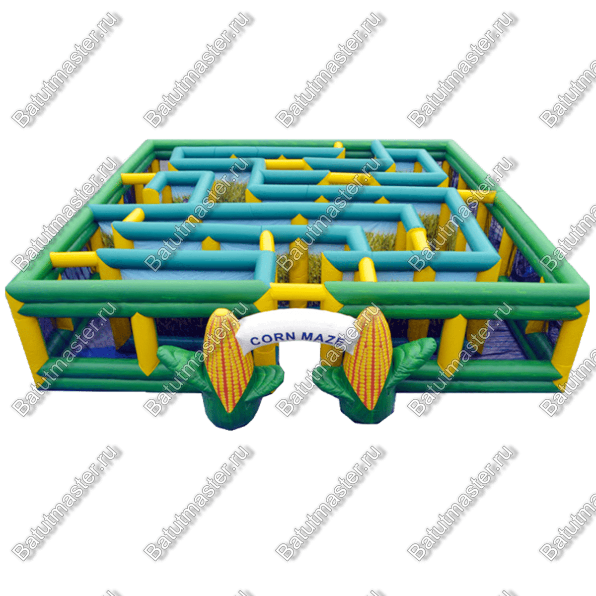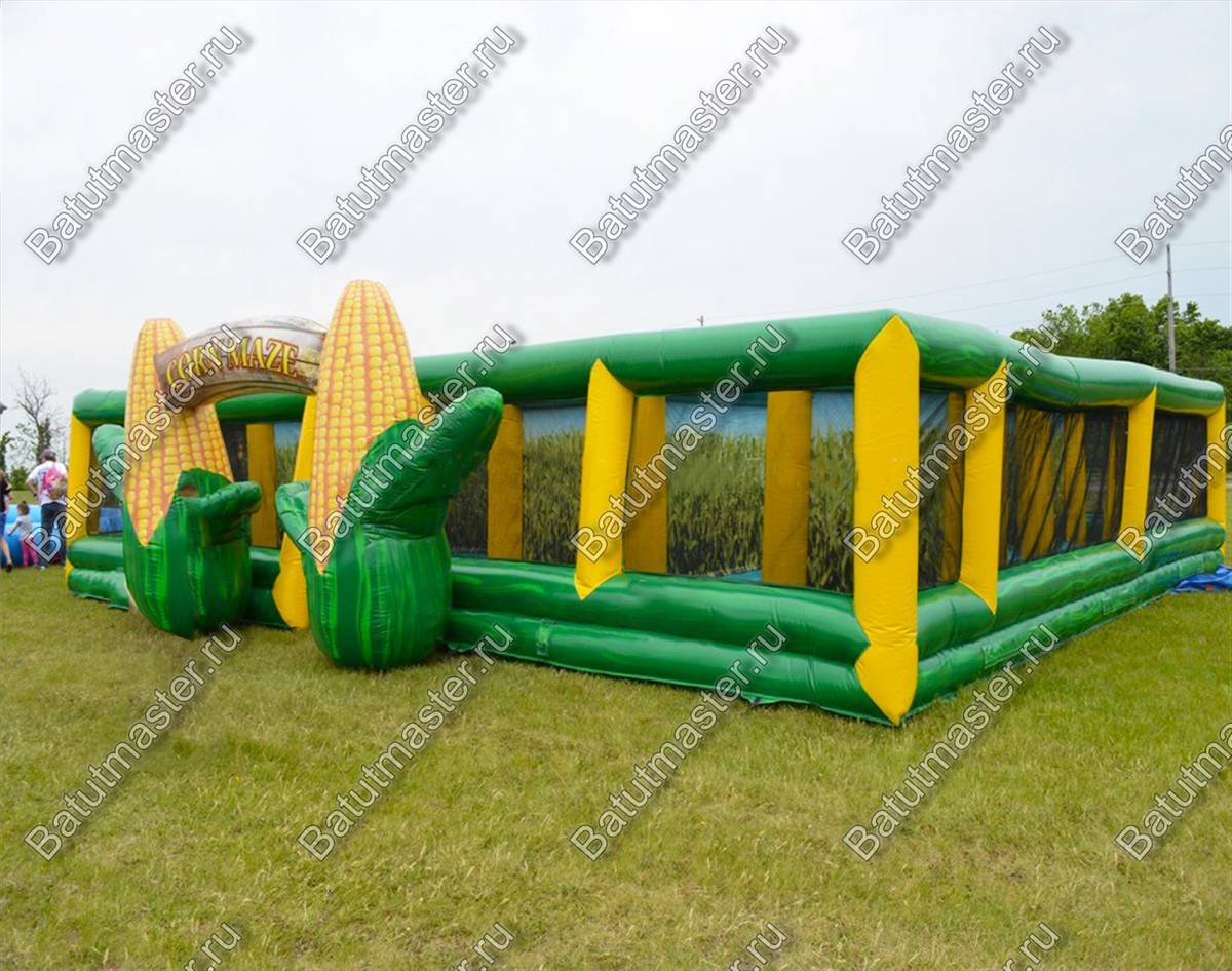 Коммерческий лабиринт «Кукурузное поле» представляет собой уникальную и интересную конструкцию, где дети смогут почувствовать себя, будто находятся в настоящем кукурузном поле. Это отличная замена такому аттракциону, как надувной батут. Здесь каждая деталь напоминает об этом. На стены нанесены реалистичные фотографии кукурузного поля, причем выполнены они в соответствии с точным размером реальных злаковых растений. Вход украшают две огромные надувные кукурузы.