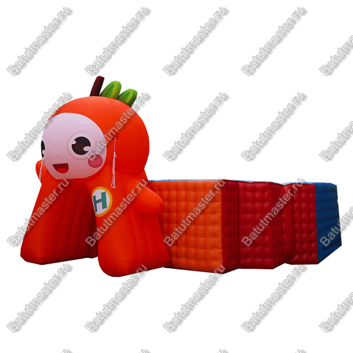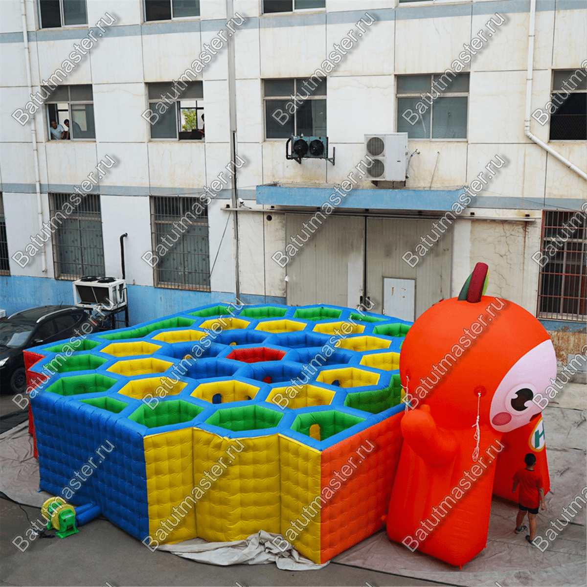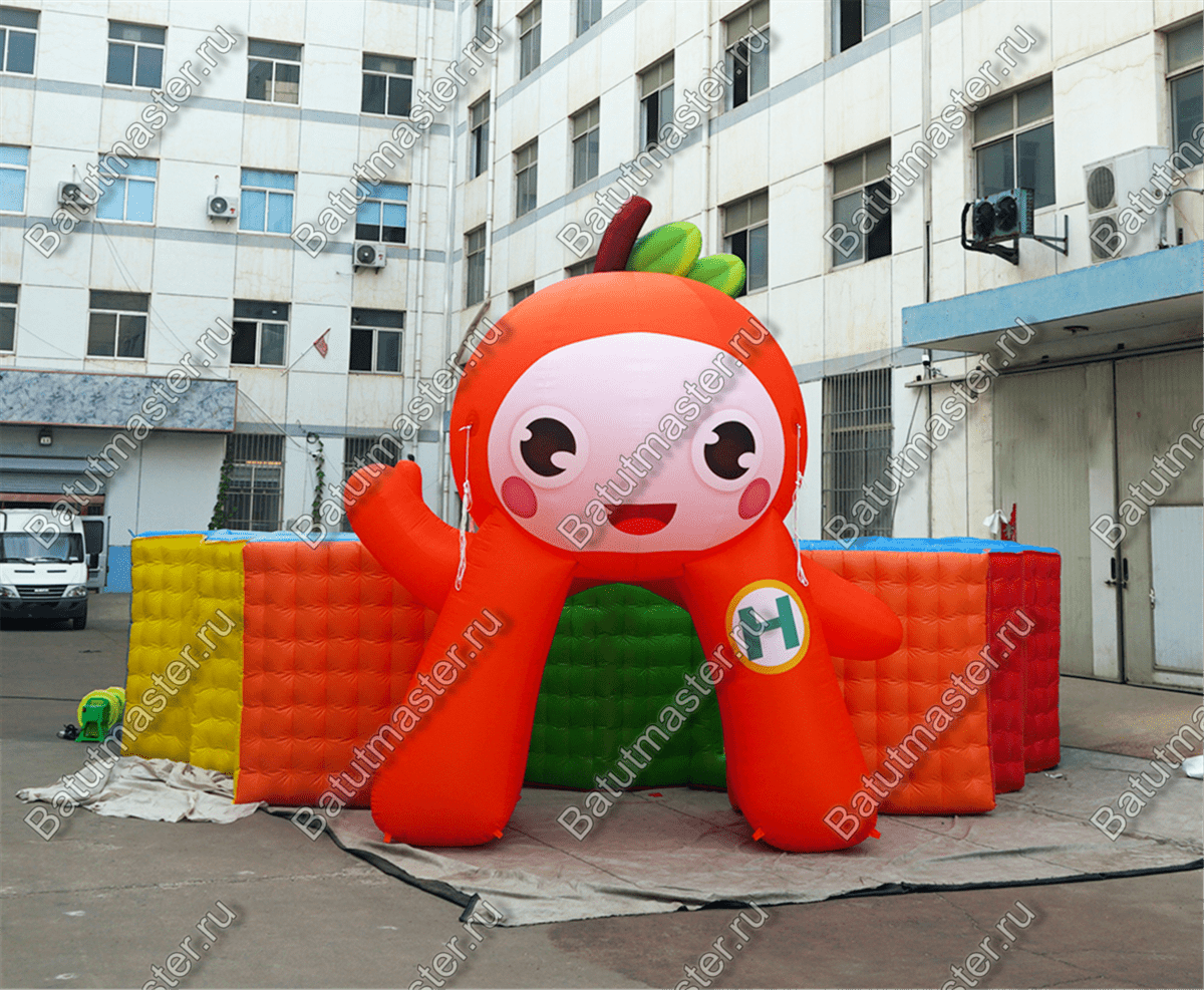 Яркий надувной лабиринт «Ранетка» встречает маленьких посетителей красочной надувной фигурой яблочка с ножками и ручками. Яблочко нарочно сделано в виде человечка, чтобы привлечь малышей, у него даже есть забавная мордашка.