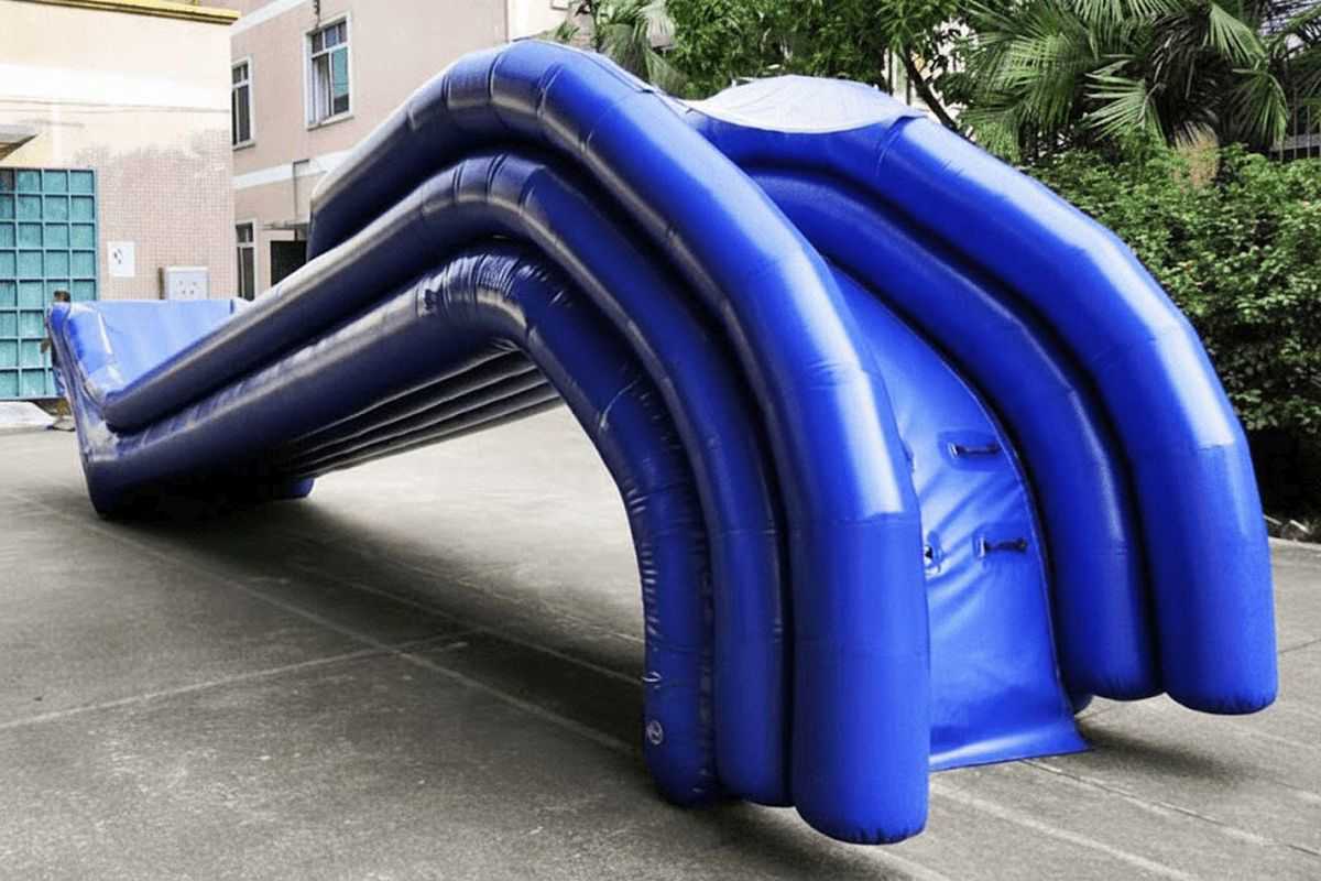 Надувную водную горку можно устанавливать как на вышке-опоре, так и на любом подходящем береговом сооружении, например, пирсе или солярии. Также возможно комбинированное решение, при котором береговое сооружение частично уменьшает высоту вышки-опоры, что позволяет снизить ее стоимость.