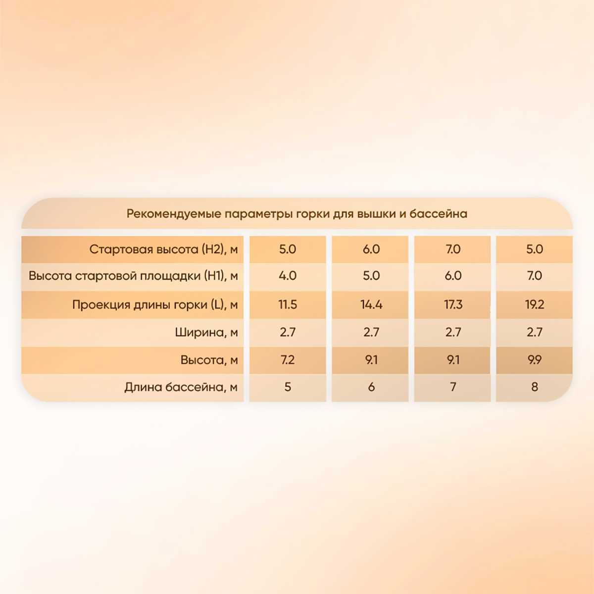 Расположение вышки-опоры определяется с учетом величины L, указанной в технических характеристиках горки. Высота вышки рассчитывается по формуле: