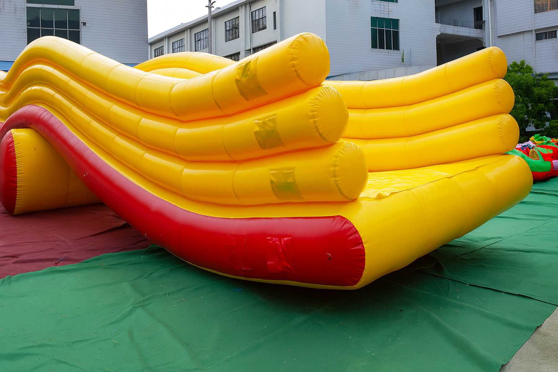 Яркий жёлто-красный дизайн привлекает внимание и добавляет праздничности любой зоне отдыха. Для бассейнов, озёр или рек это не просто аттракцион, а способ превратить воду в зону активного и безопасного развлечения.